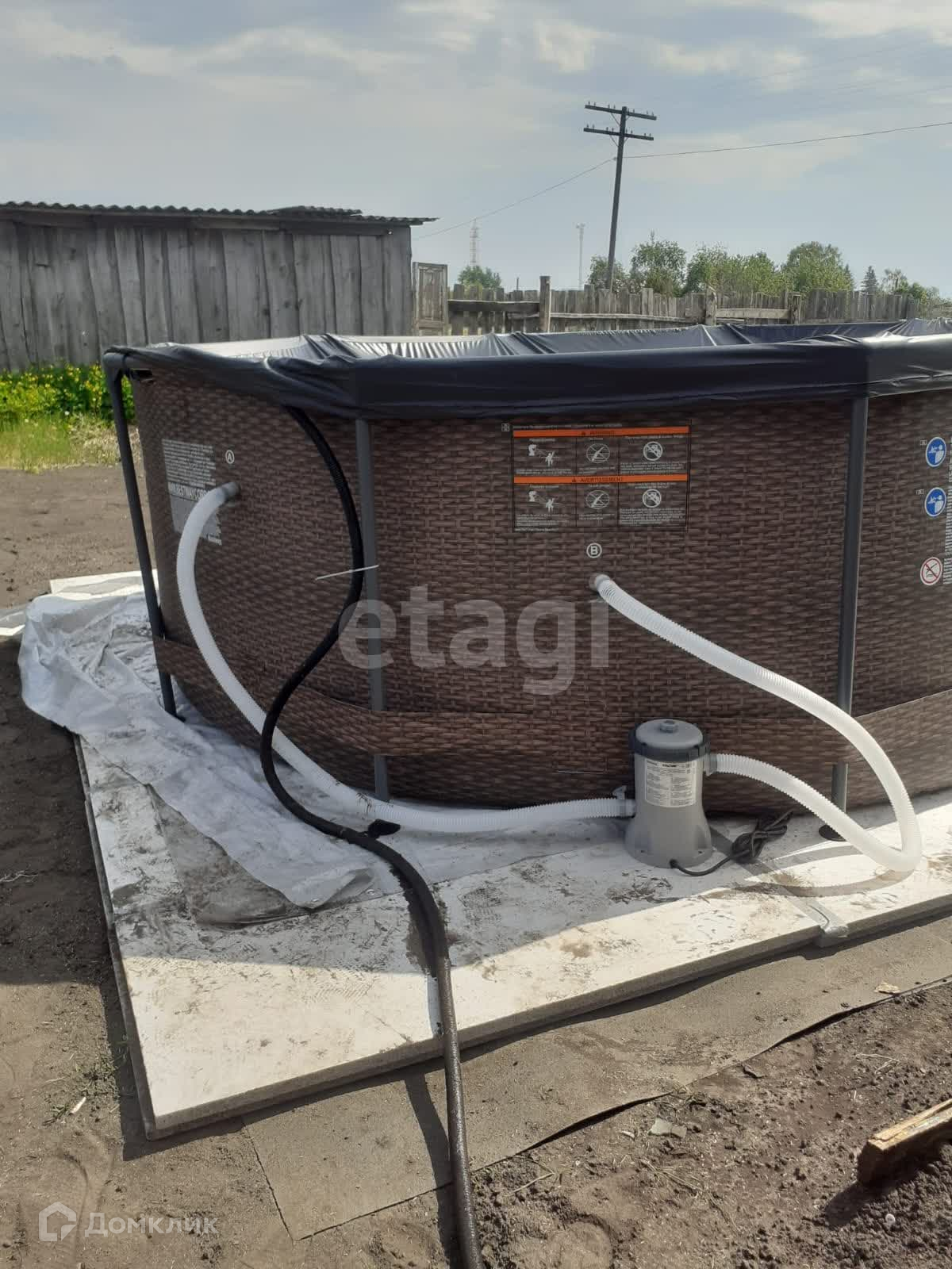 На участке расположены две скважины, баня, дровник и различные хозяйственные постройки.