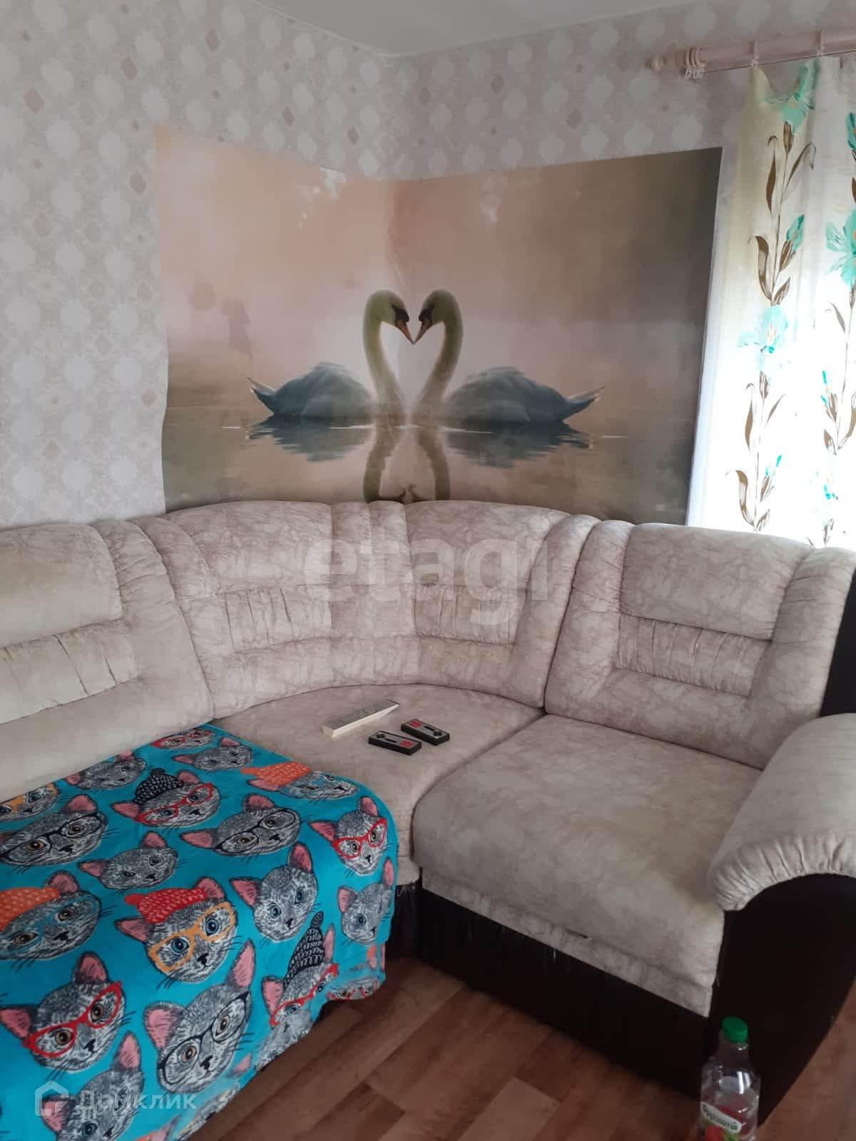 Сделан качественный косметический ремонт: стены оклеены обоями, пол покрыт линолеумом.