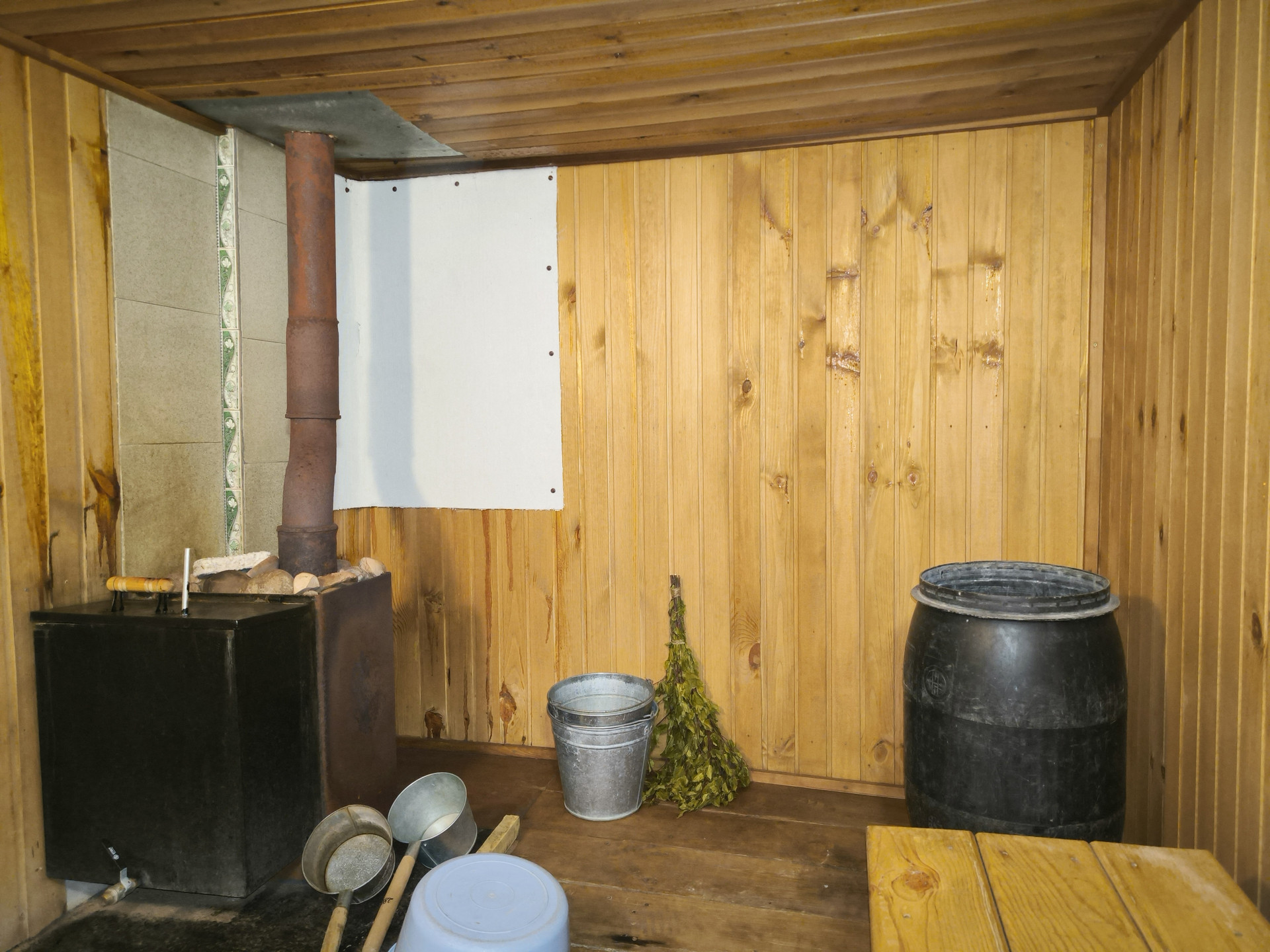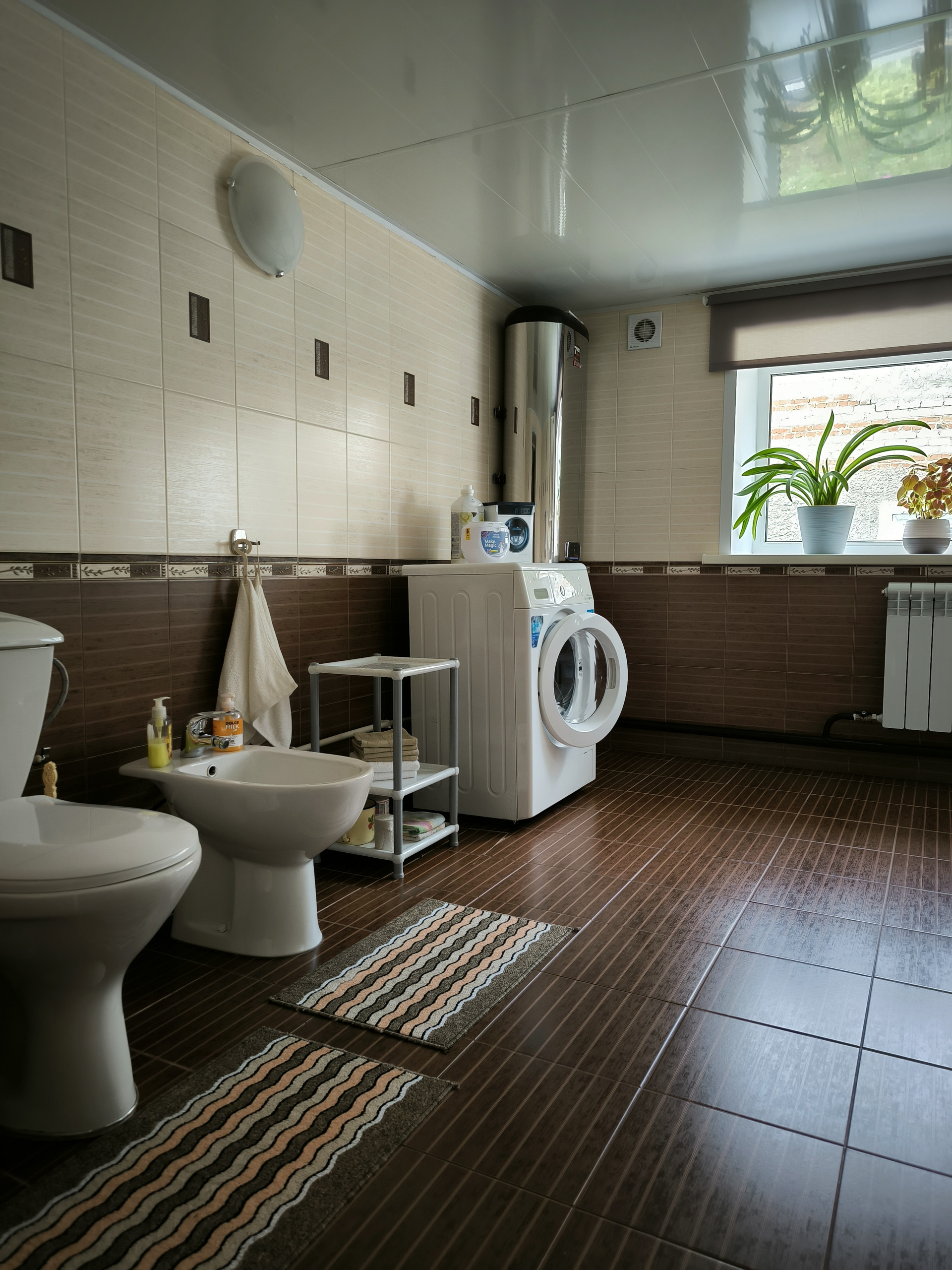 санузел с большой ванной, биде и бойлером на 100 литров;