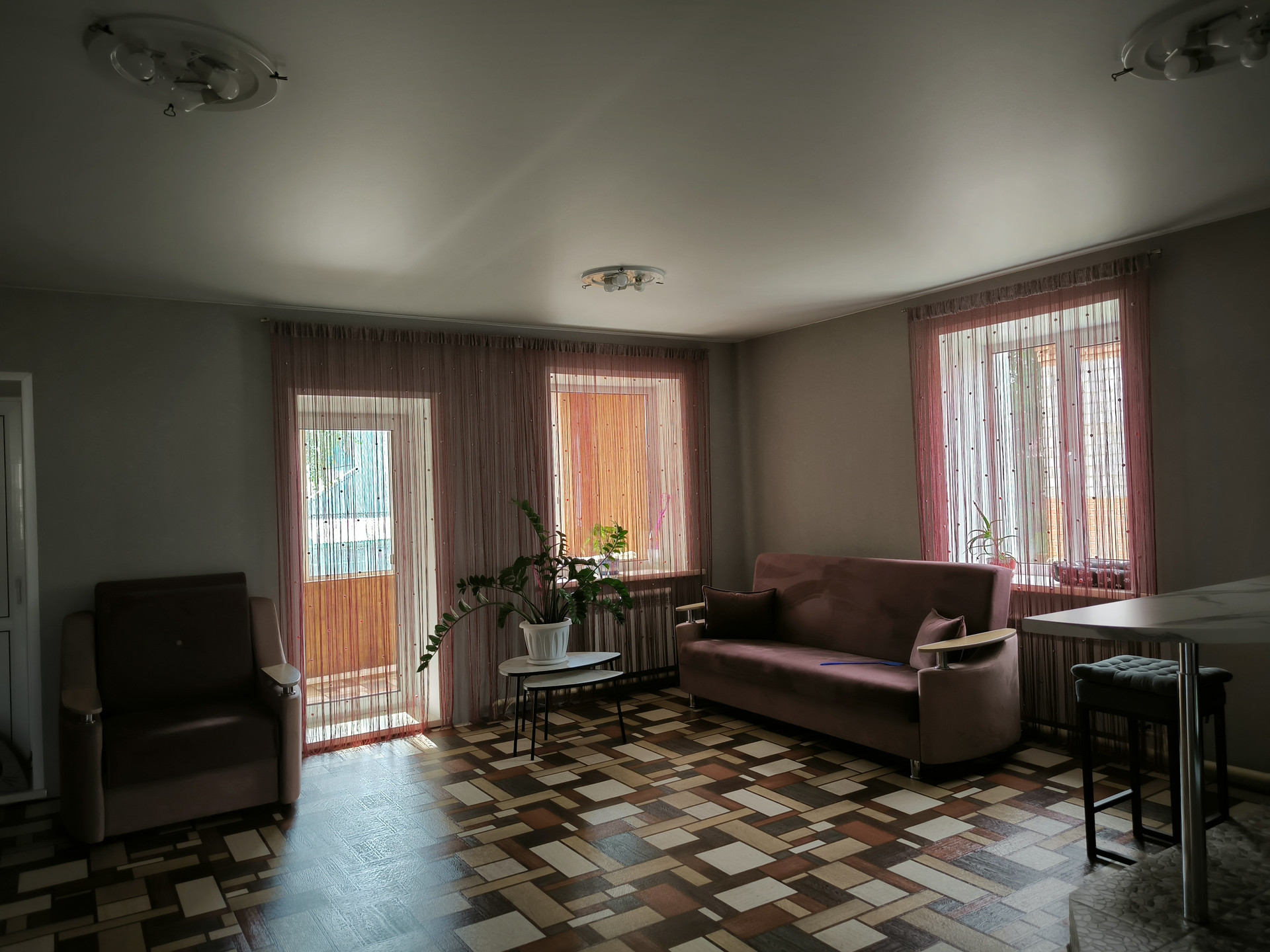 большой коридор с двумя окнами;