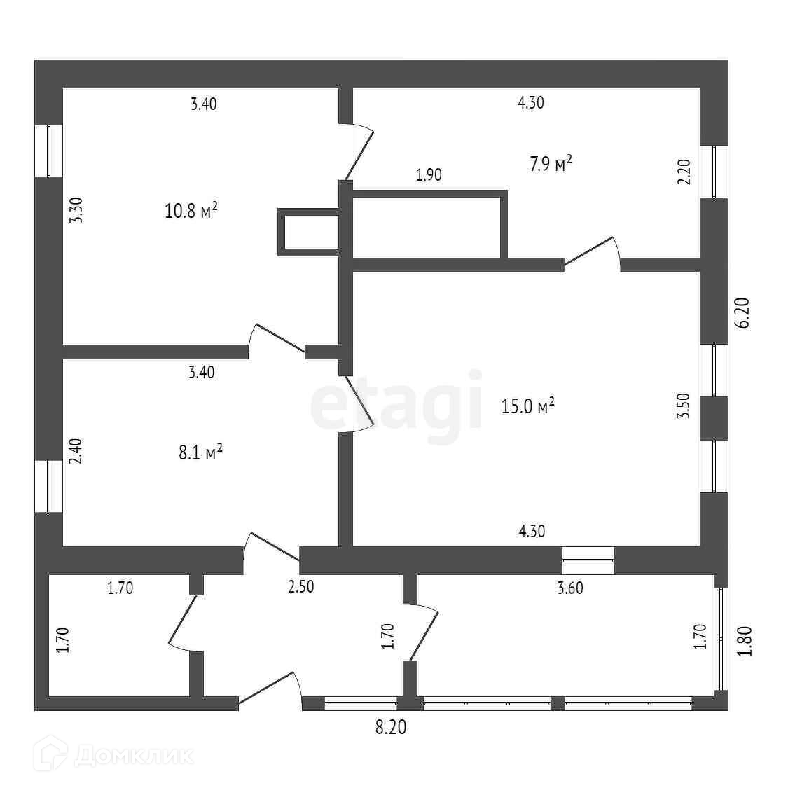 Общая площадь 41.8 м2