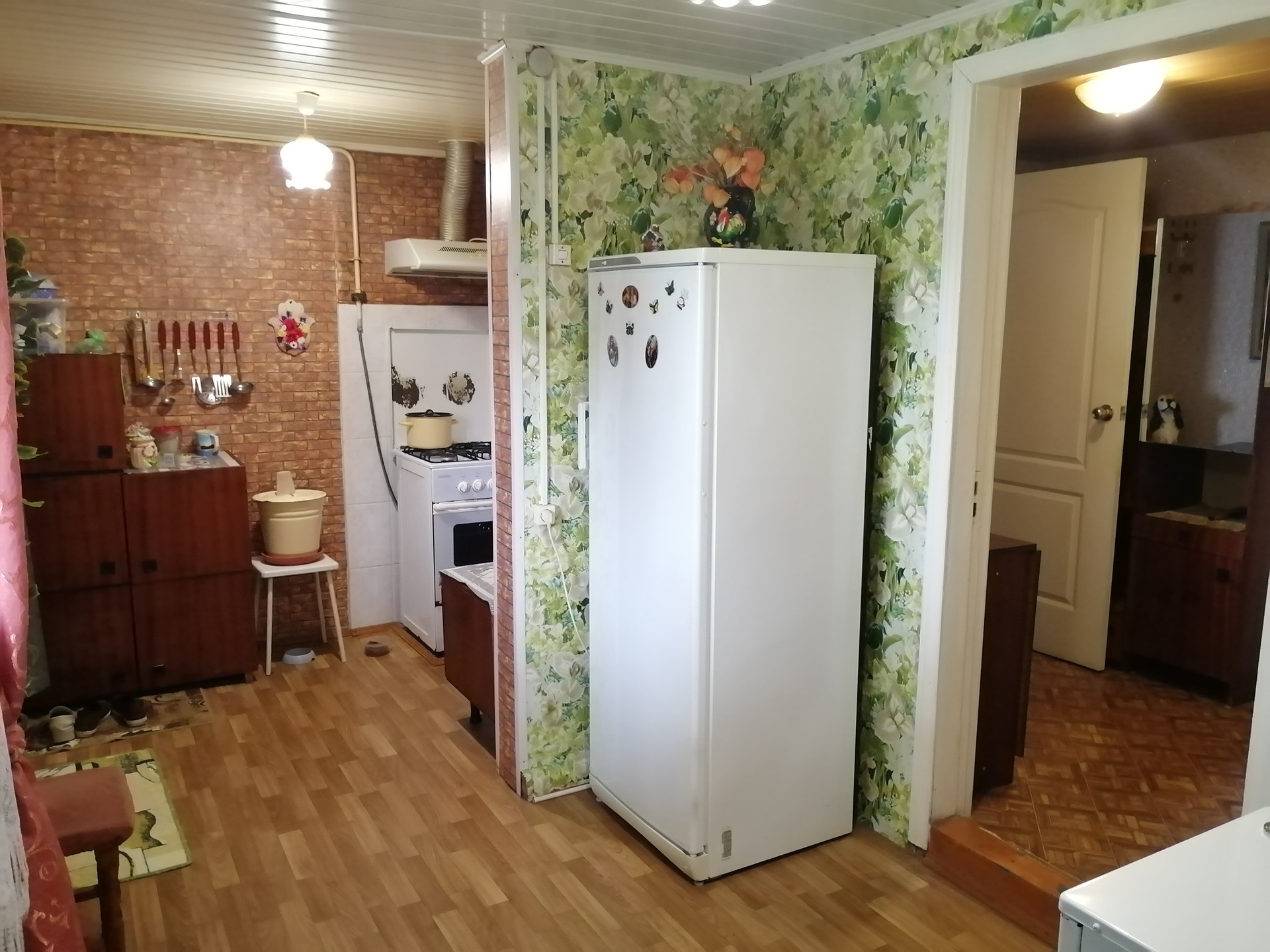 Дом деревянный крепкий в отличном состоянии. В доме газовое отопление, вода(центральный водопровод), местная канализация .Четыре комнаты, кухня , сан. узел совмещенный отделан кафелем. Окна остеклены стеклопакетами.