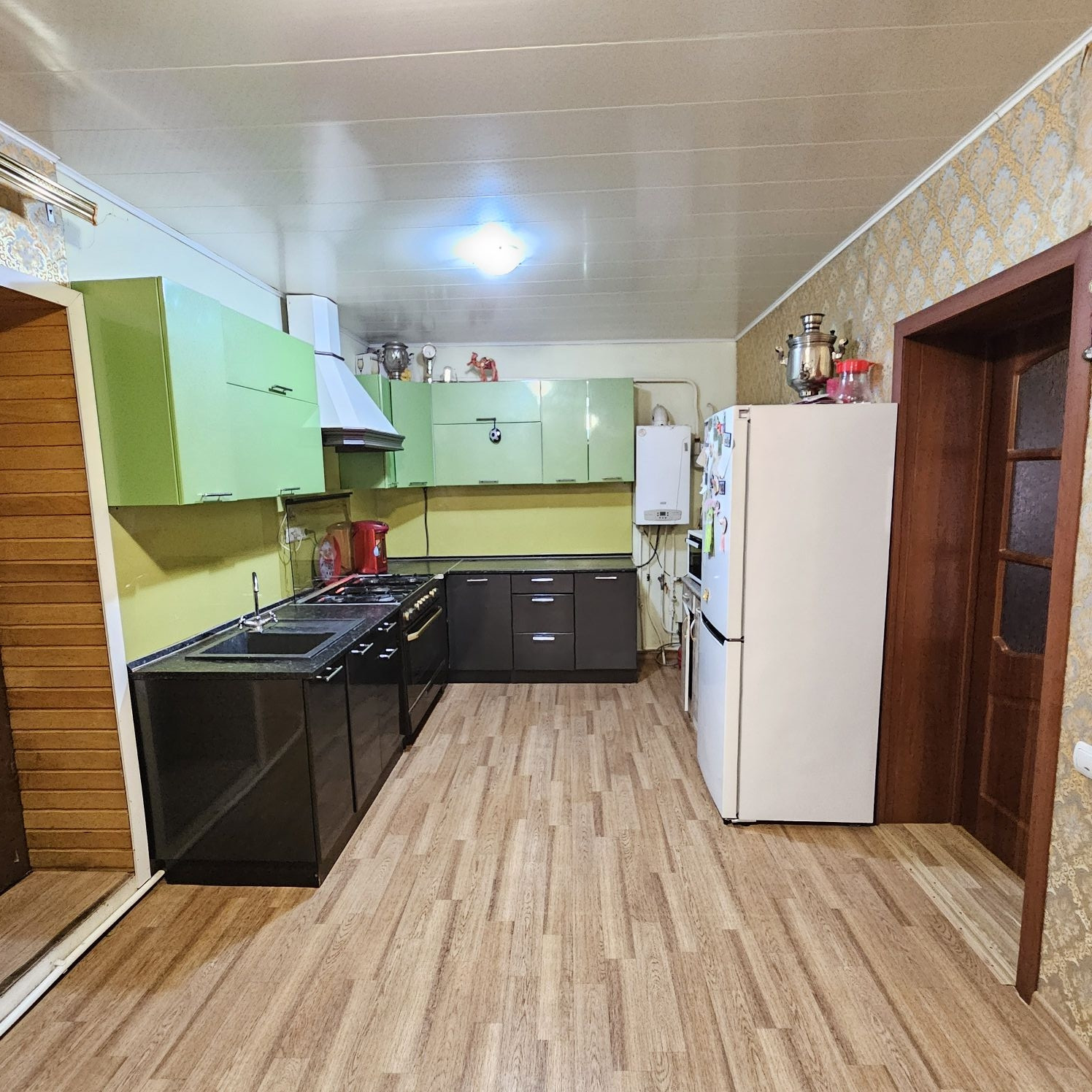 Практически всё, что на фото останется новым собственникам- заезжай и живи. Отопление газовое- установлен двухконтурный котёл, вода  центральная, канализация местная. ТВ и интеренет проведены.