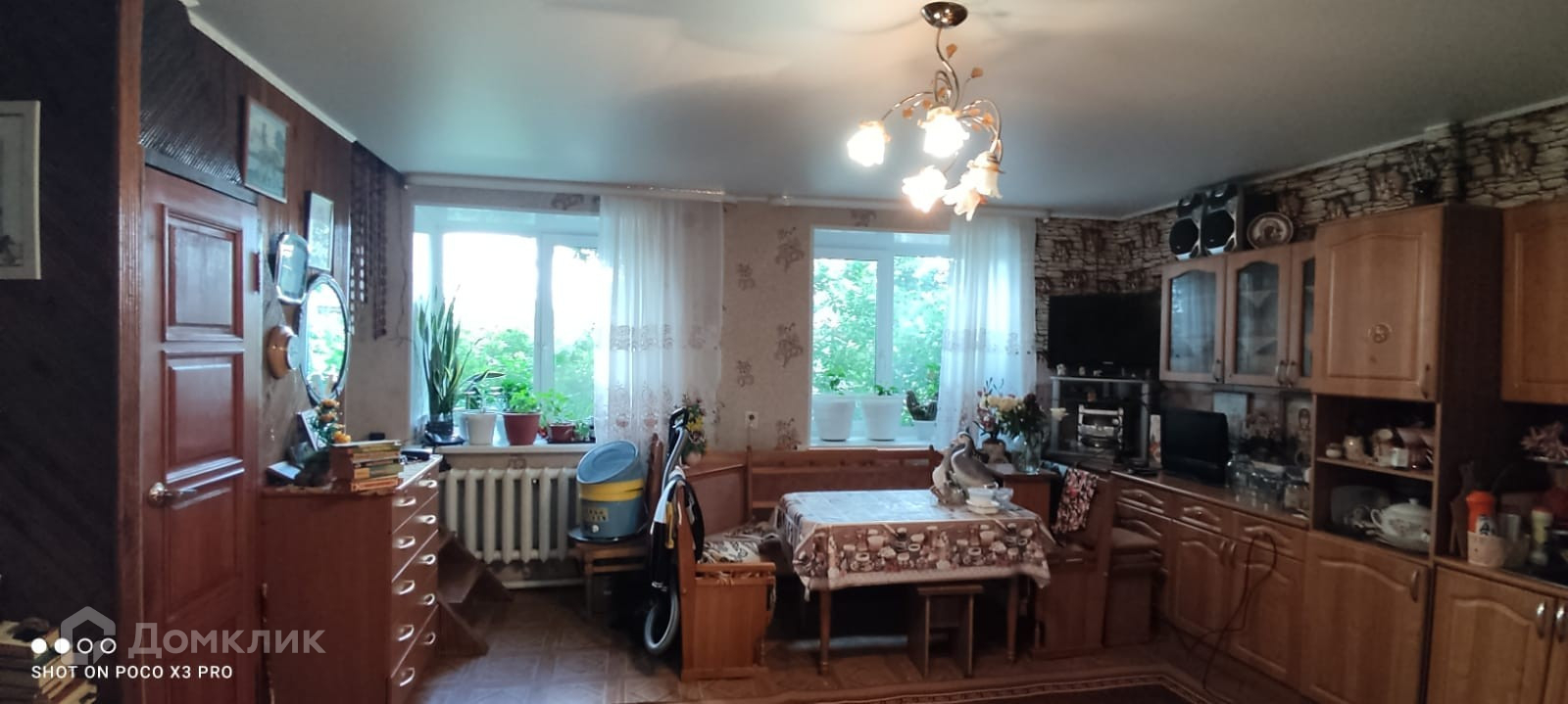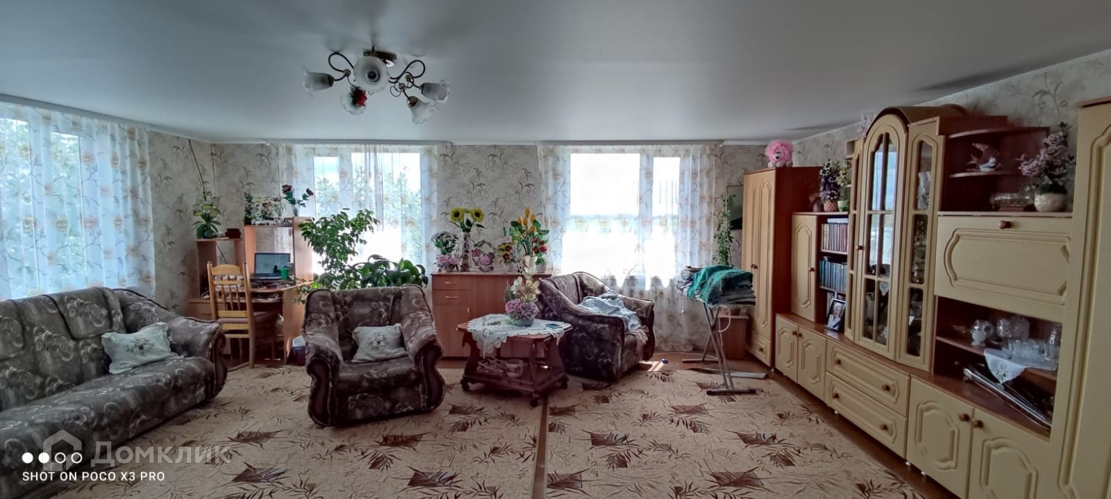 В доме кухня гостиная и три комнаты.