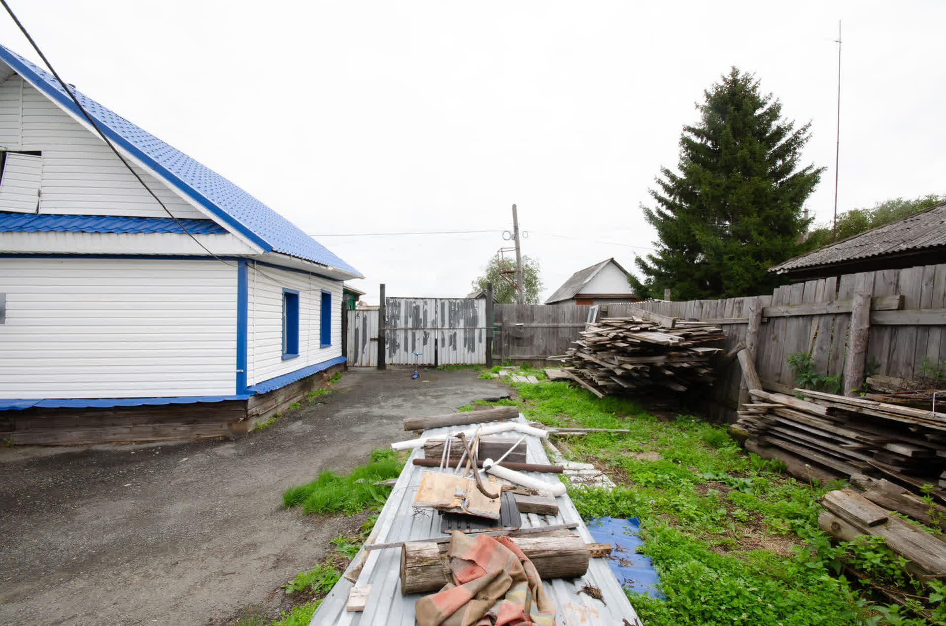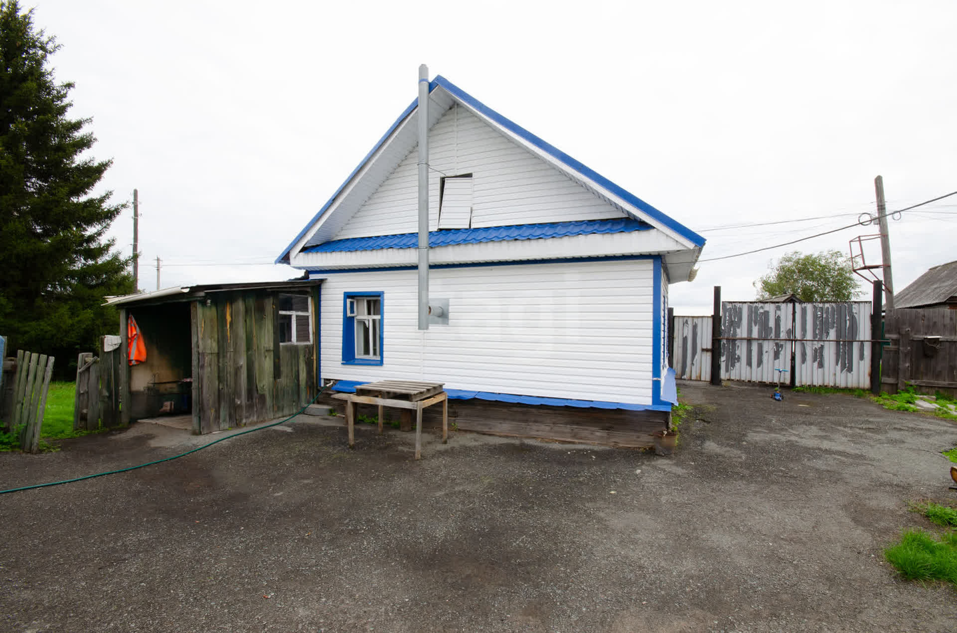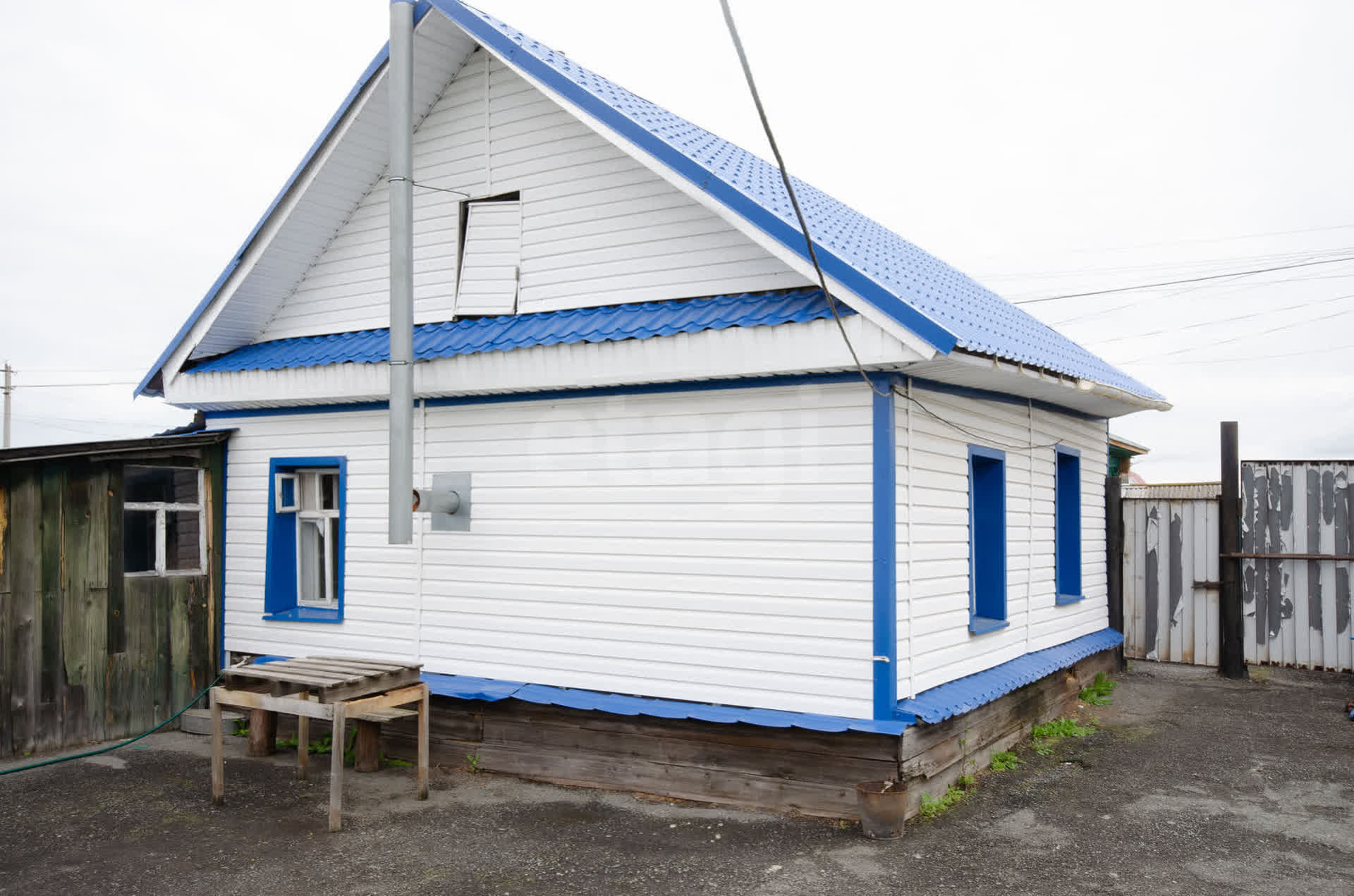 --обшит виниловым сайдингом, новая крыша.