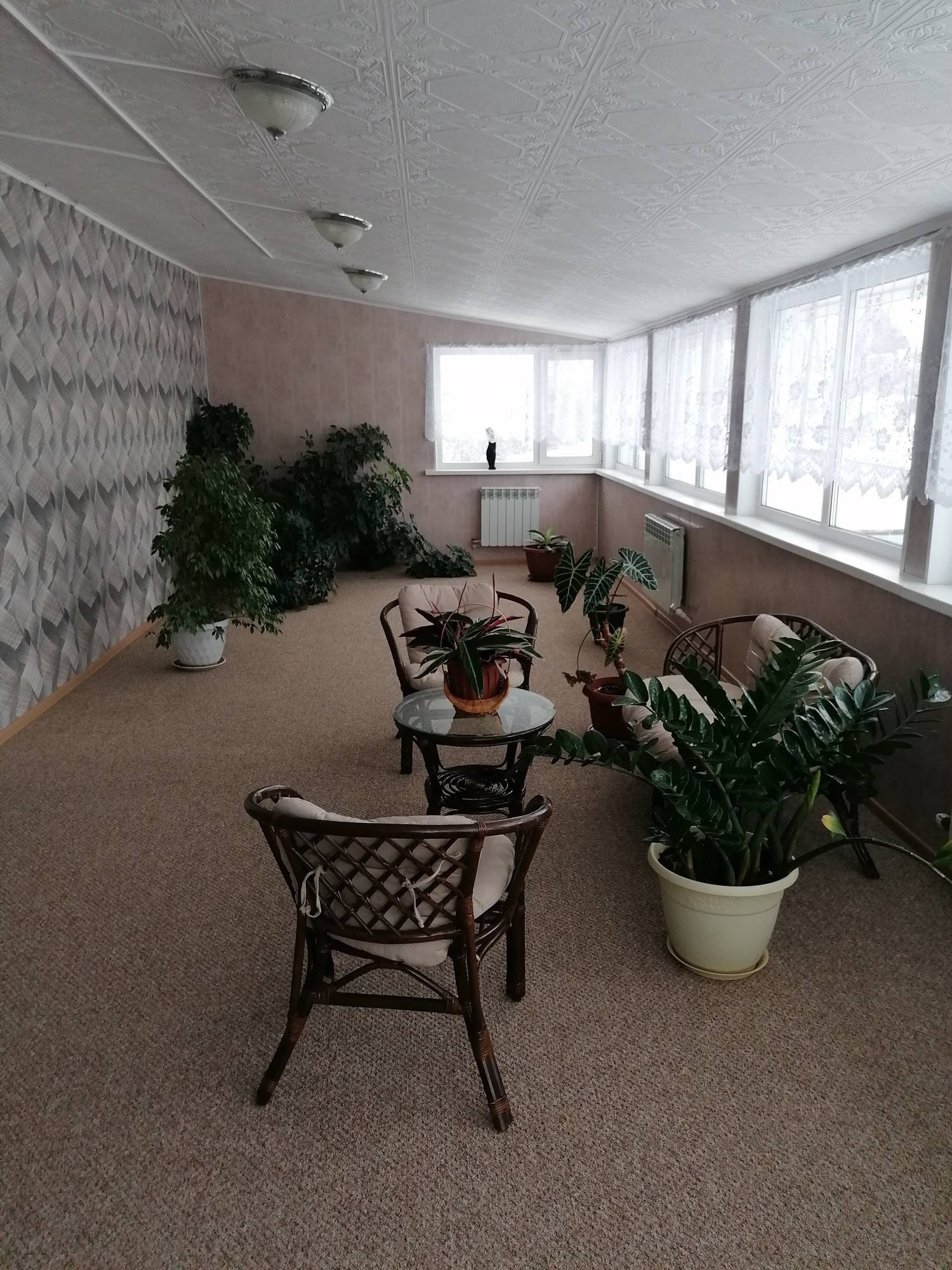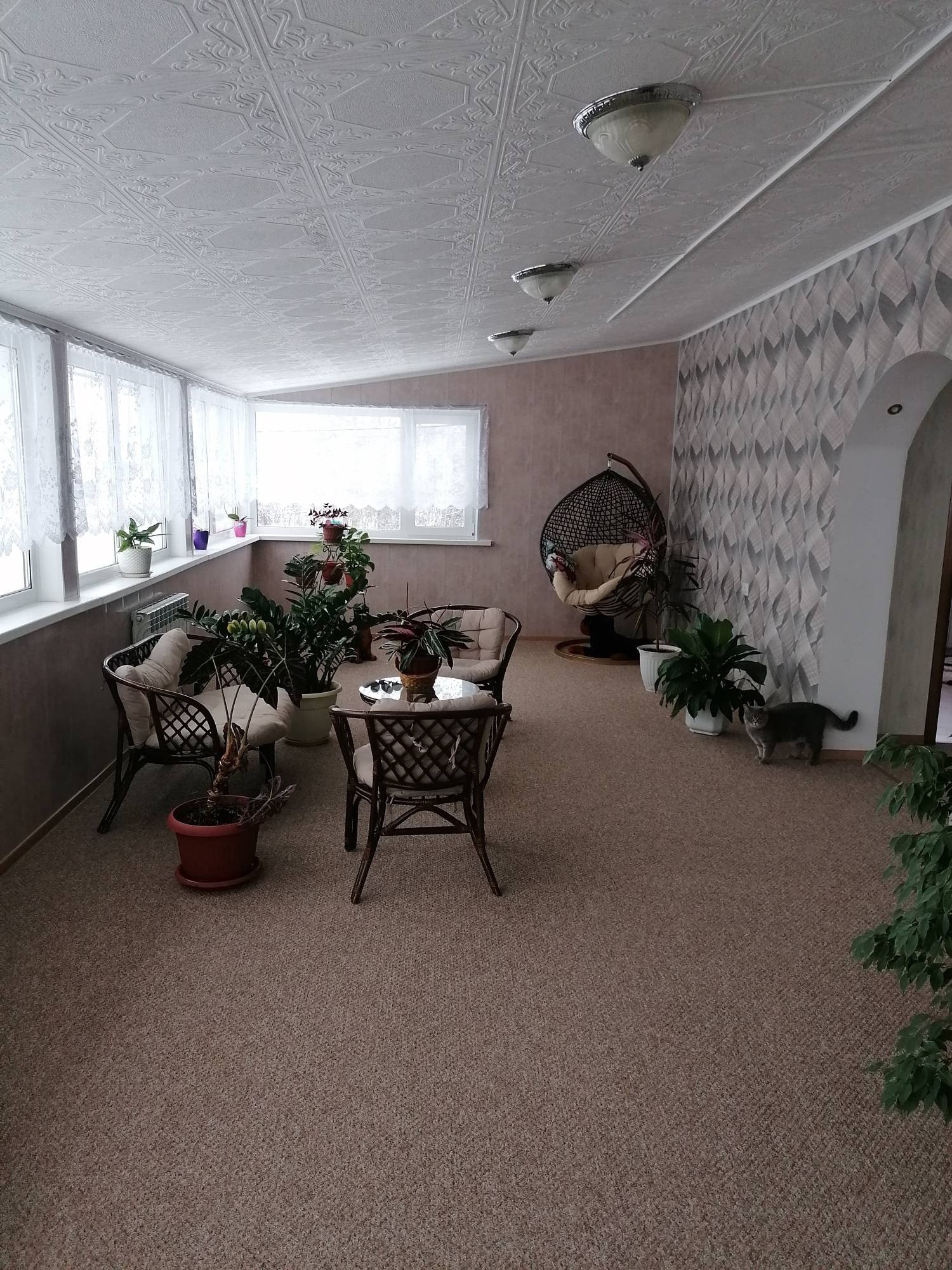 на втором этаже расположена: две спальни и зимний сад.