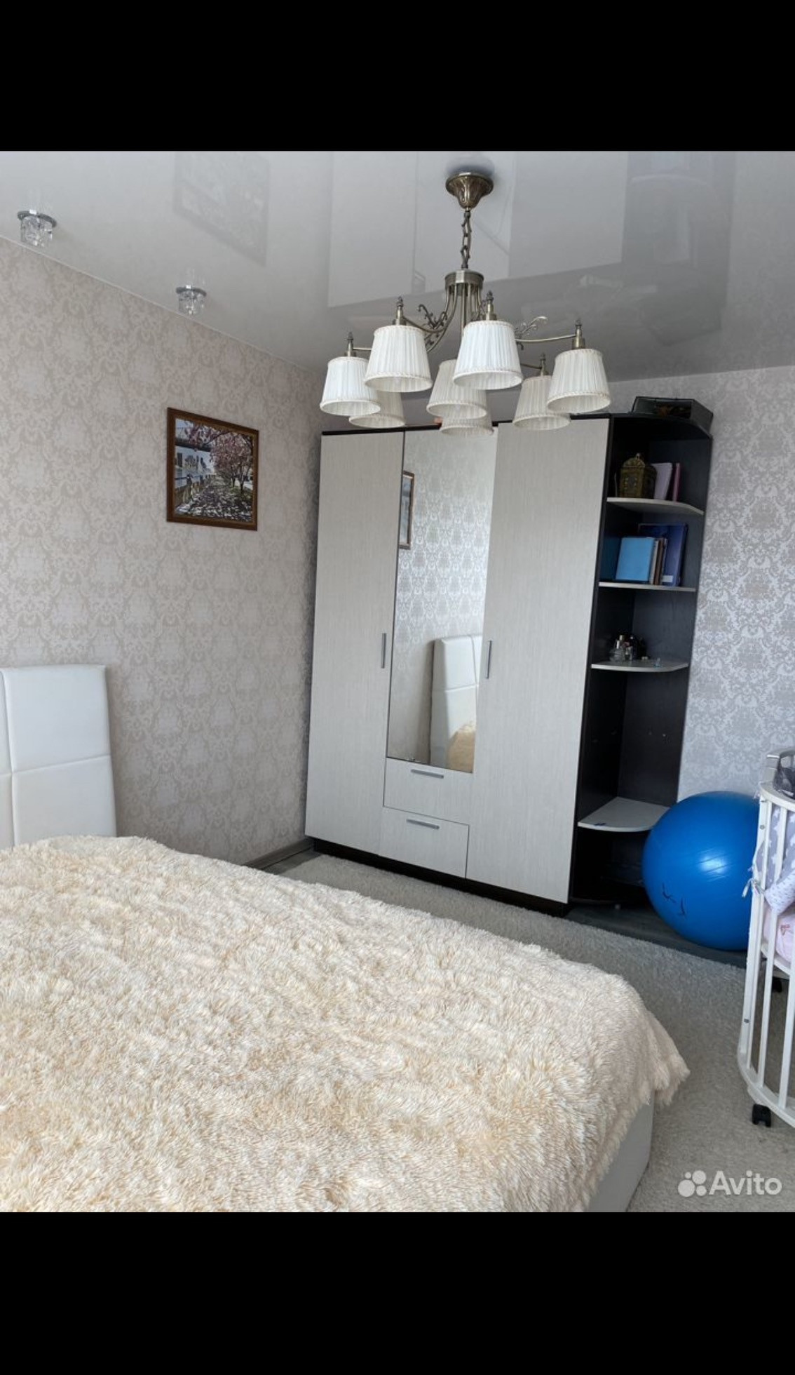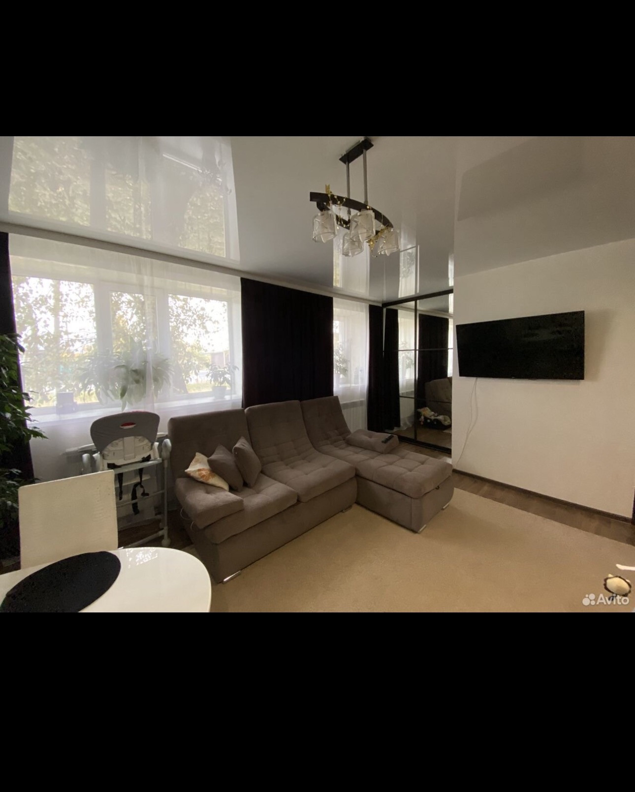 В каждой комнате ламинат, натяжной потолок с точечным и основным освещением.