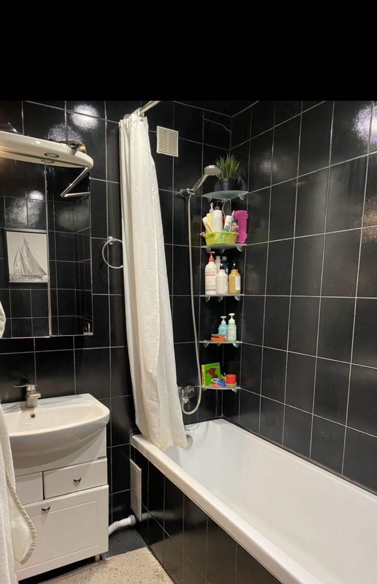 В ванной и коридоре постелен кафель
