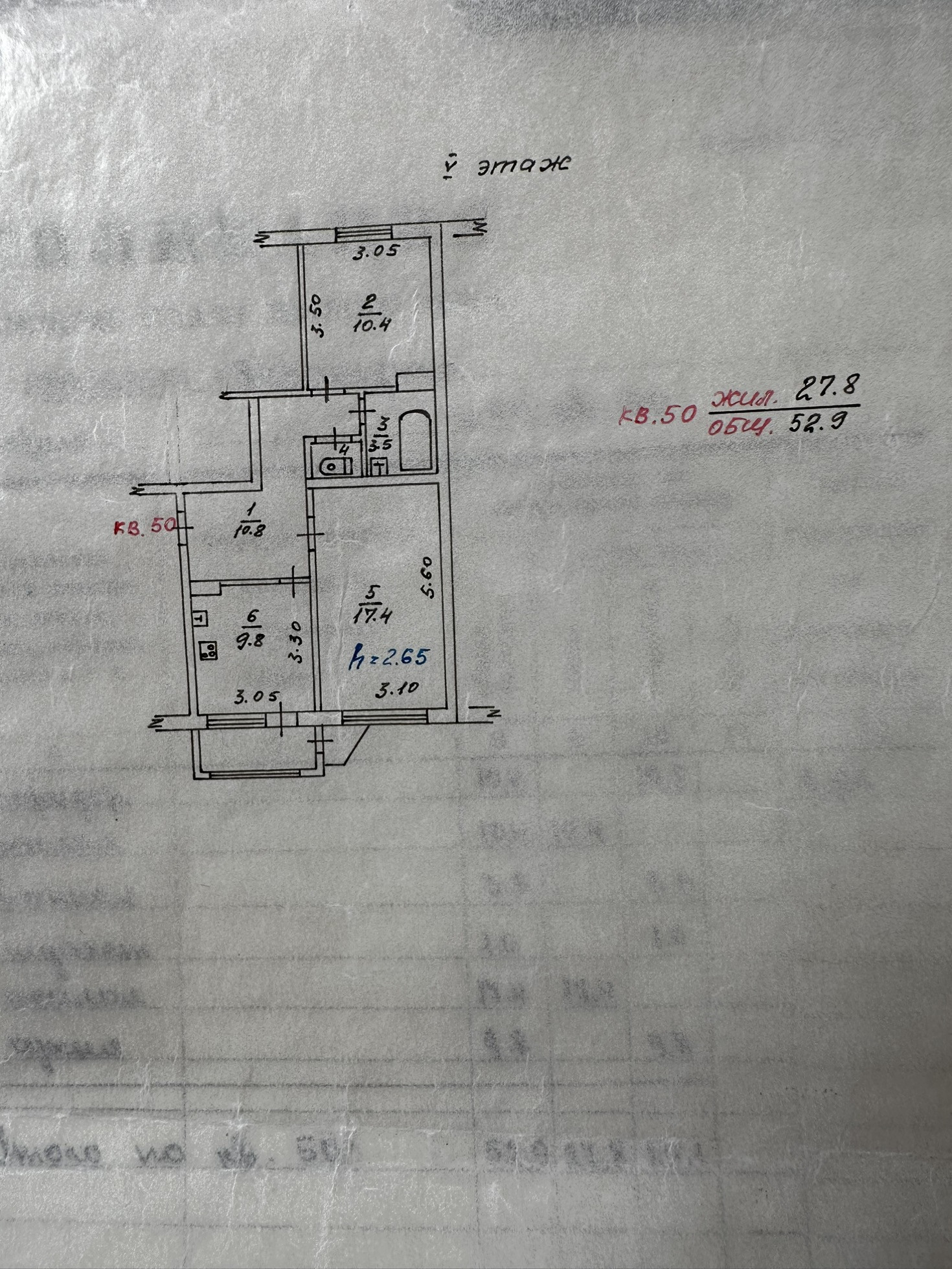 Общая площадь 52.9 м2