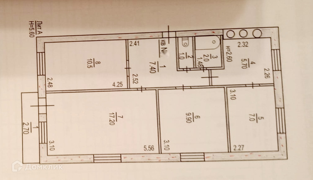 Общая площадь 60.7 м2