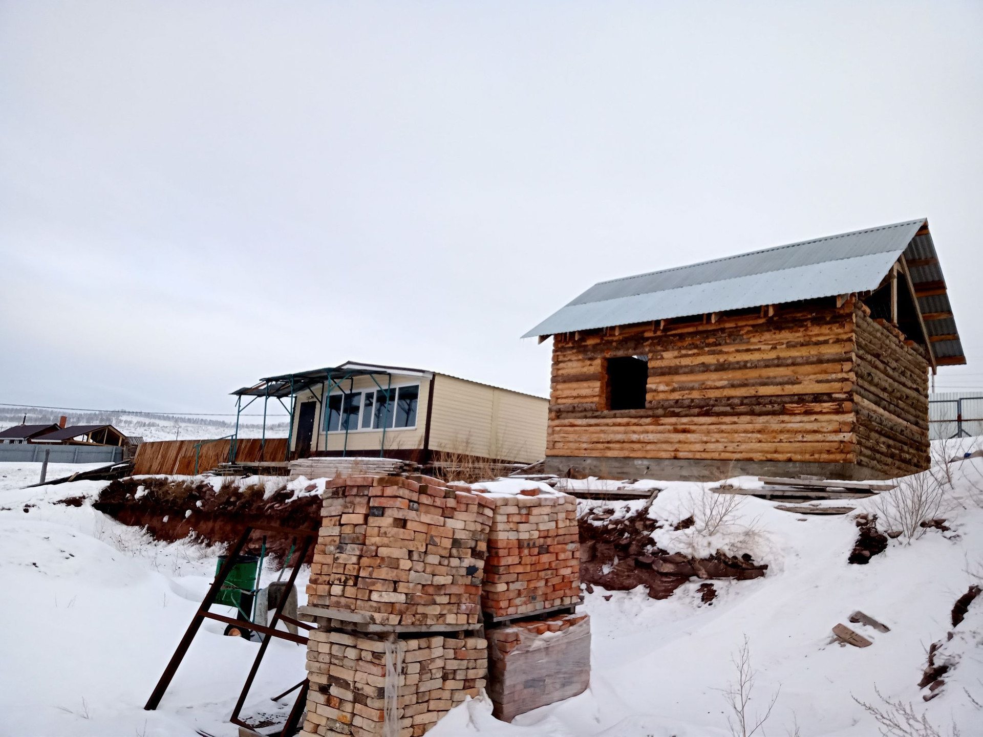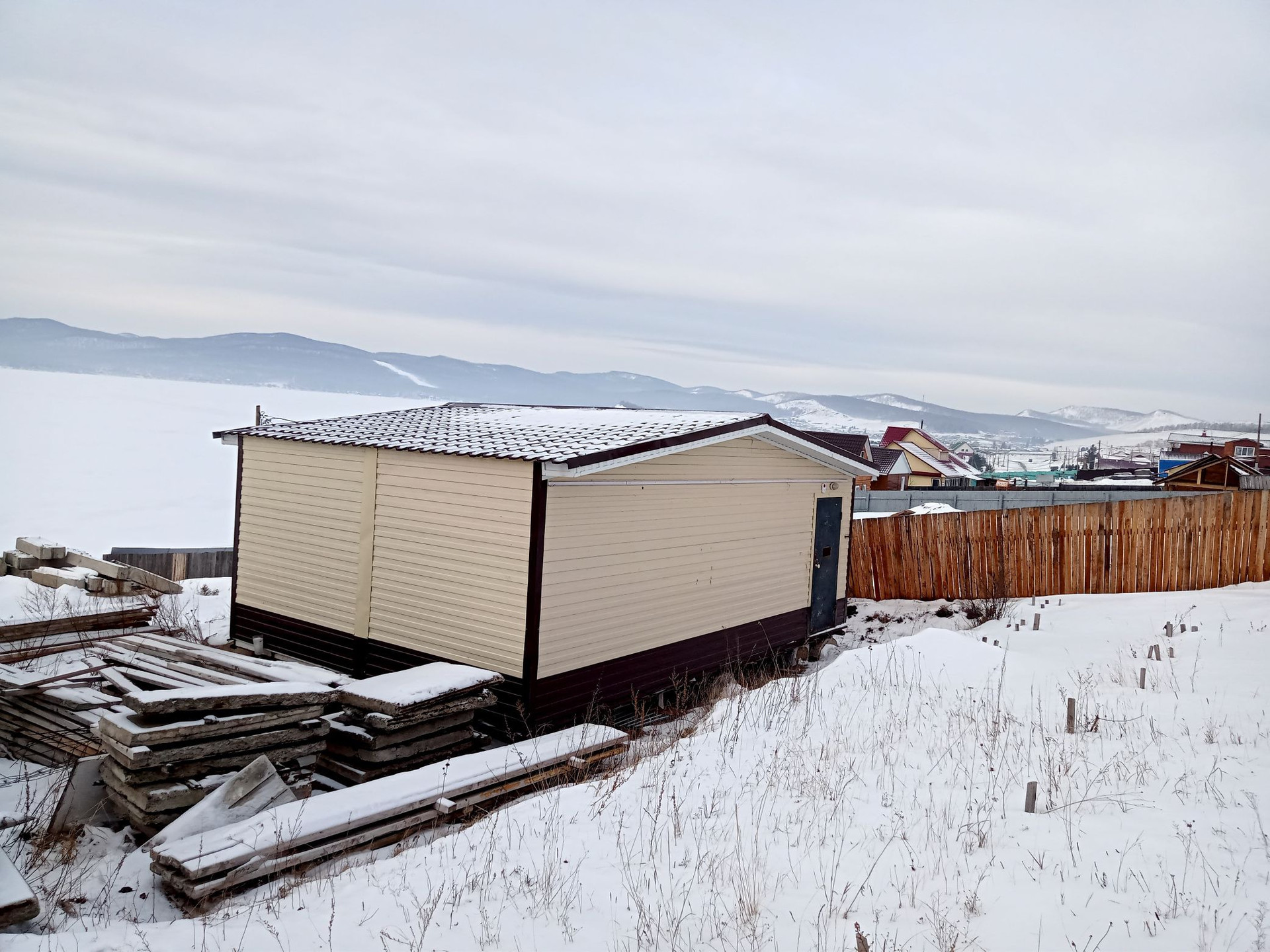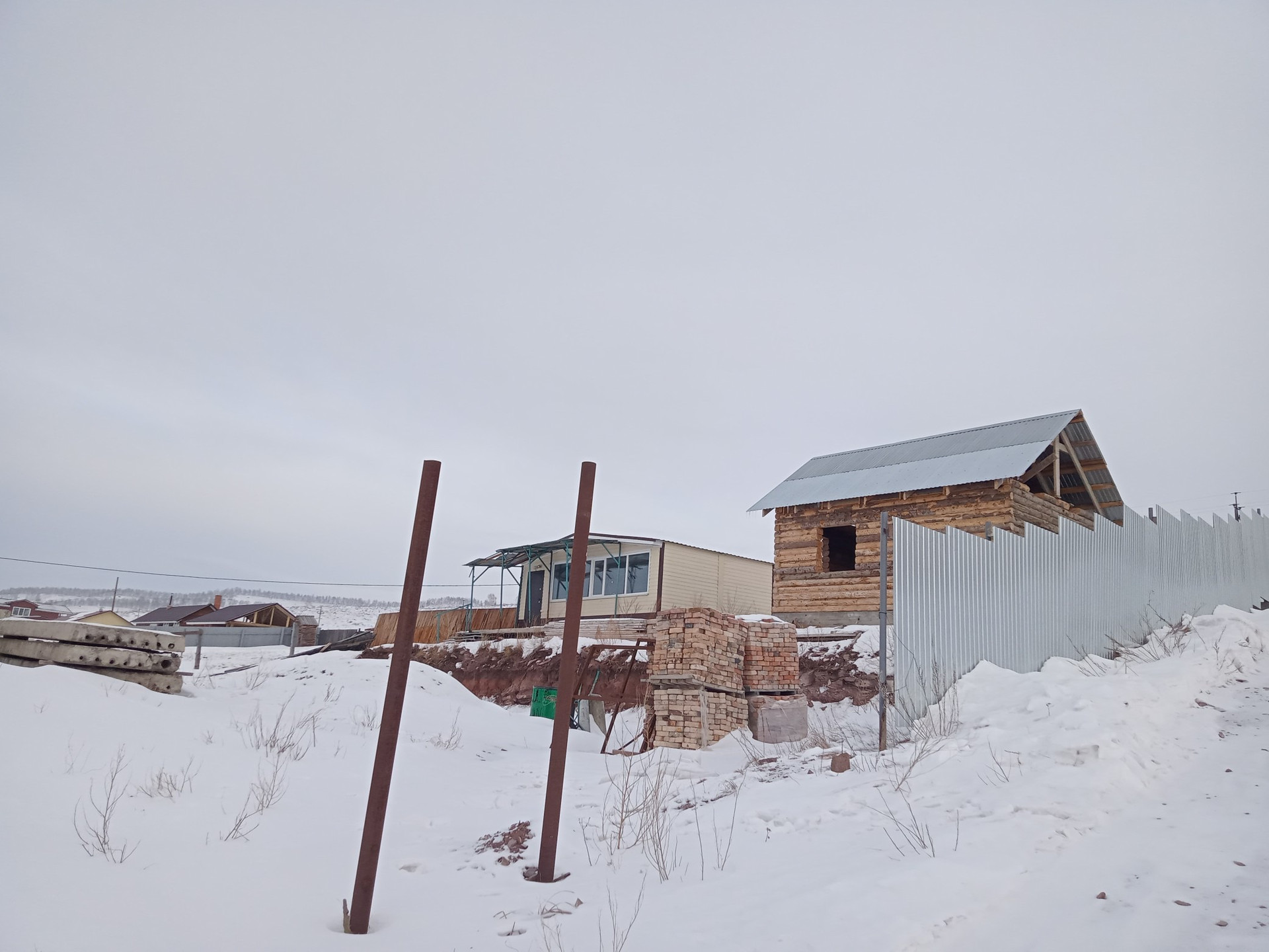 Продаётся дом общей площадью 40 кв.м. построен из сэндвич панелей, обшит профлистом, крыша покрыты профлистом. Проведено электричество, счётчик установлен, высота потолка 260. На участке 10 соток земли, есть сруб бани . Сделана двухуровневая планировка участка. Огорожено профлистом, металлические столбы залитые. На участке завезены ФСКи и 9 плит перекрытия размером 6,2м. на 1,50м. на гараж. 13 поддонов кирпича готовые ворота и калитка.
