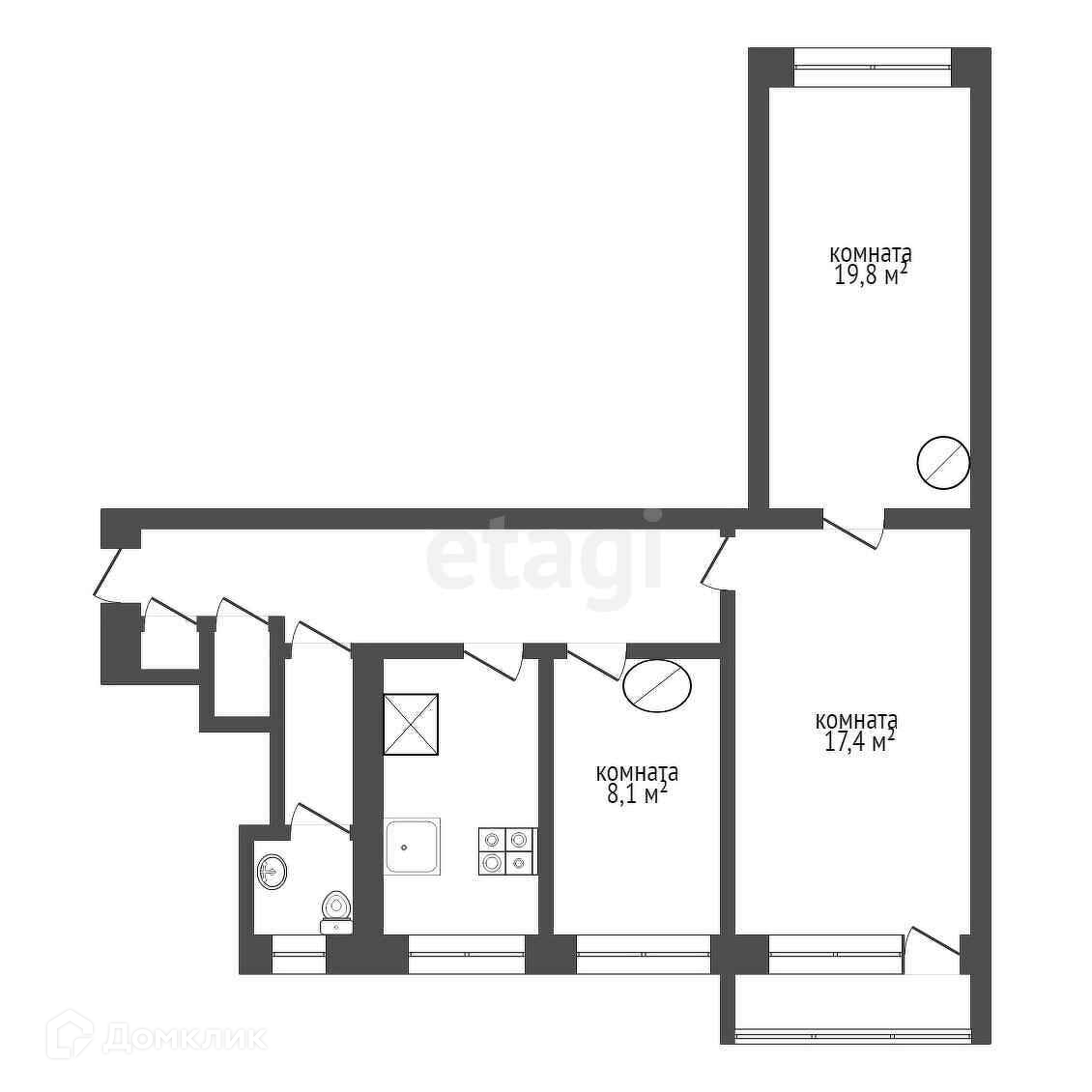 Общая площадь 64.5 м2