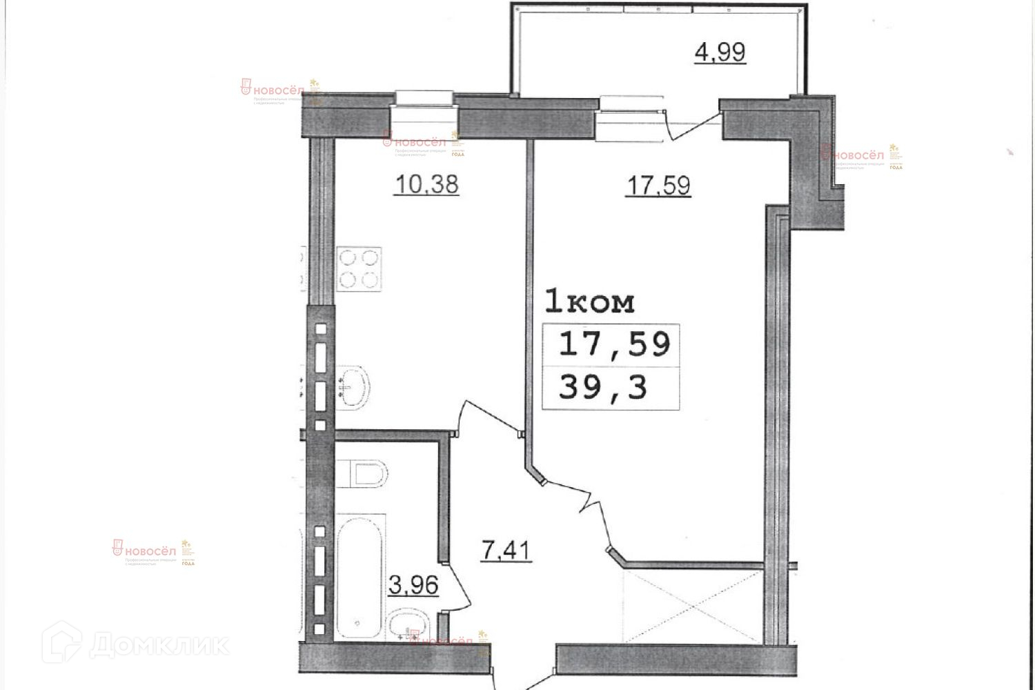 Общая площадь 39.3 м2