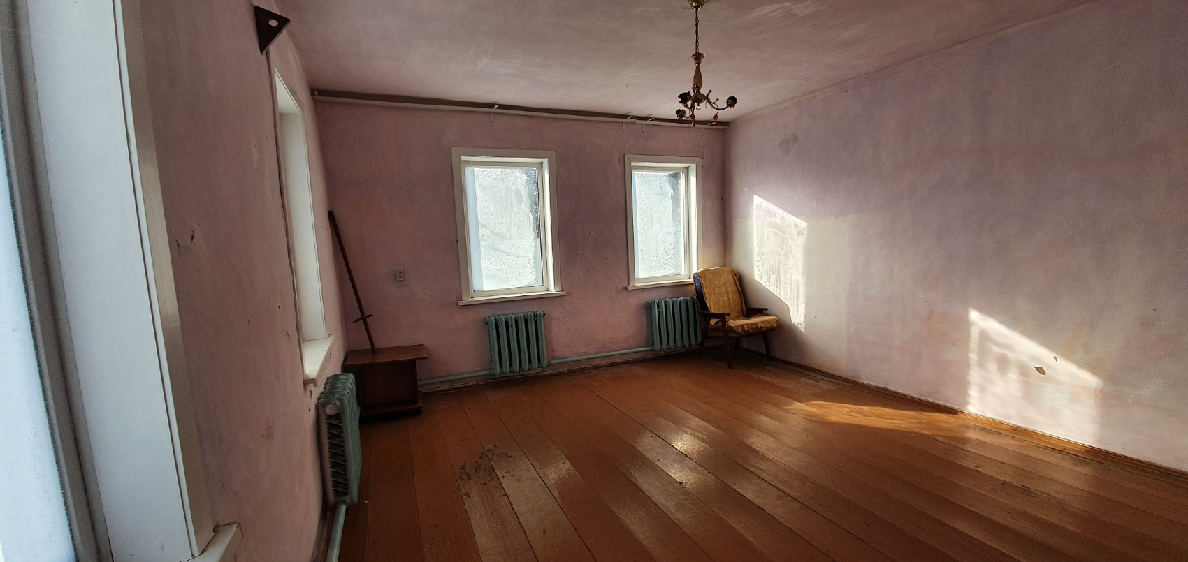в доме имеются три комнаты, две спальни и большой зал;