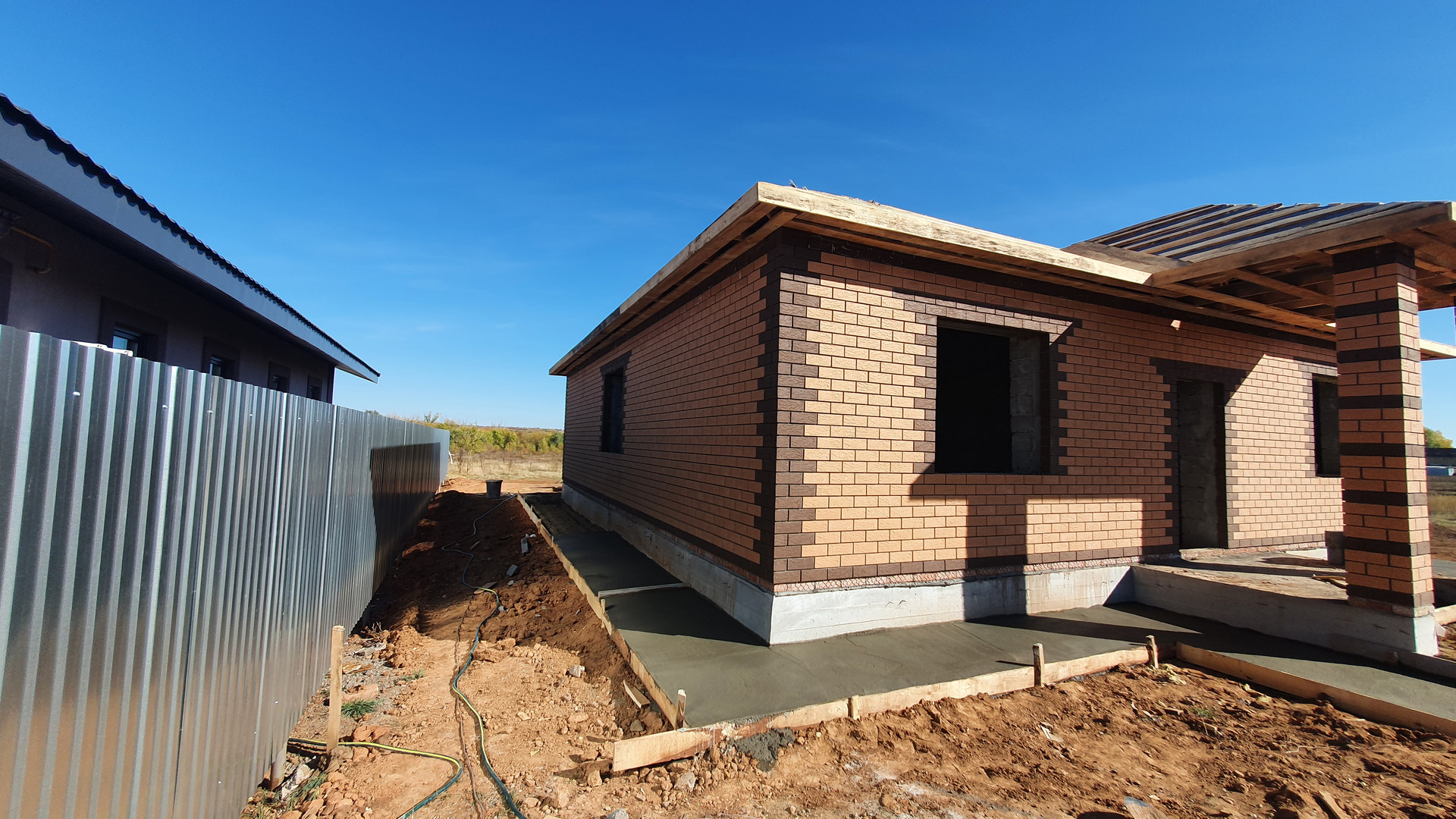 Дома сдаются с предчистовой отделкой, стены оштукатурены под обои, залита стяжка пола, проведена электрика, разведены по дому канализационные и водопроводные трубы, с 3 сторон установлен забор.