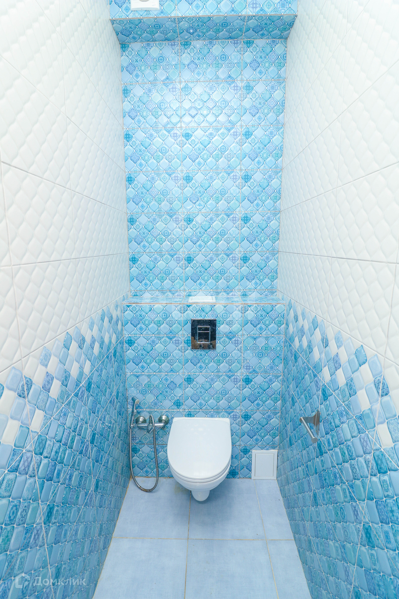 Раздельные санузлы в кафельной отделке оборудованы на каждом этаже. На первом этаже установлена ванна, на втором - душевая кабина.
