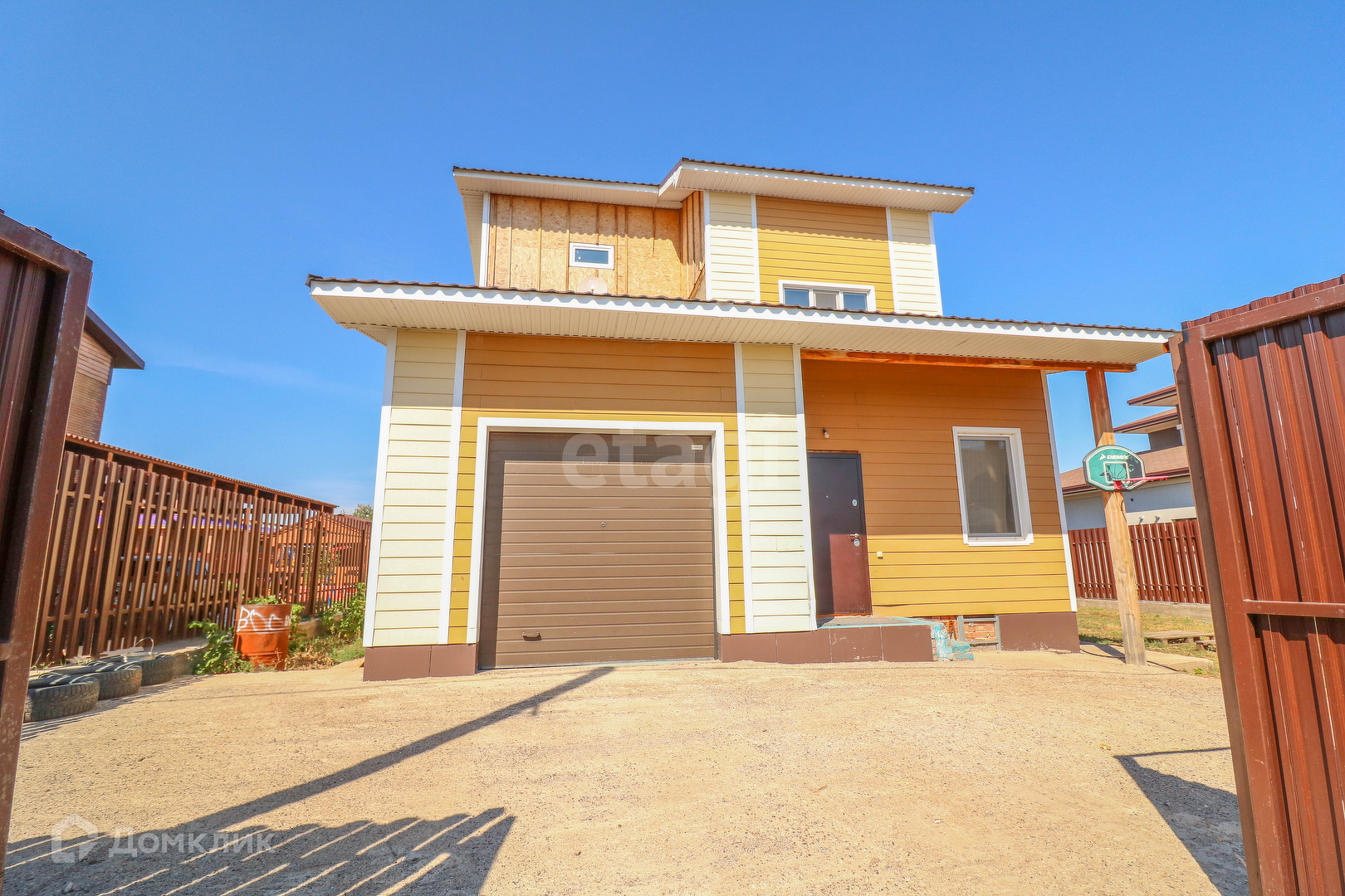 Есть гараж на одну машину + перед домом забетонирована площадка еще на 2-3 машины.