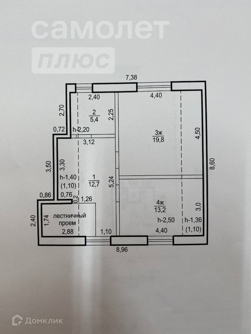 Жилая площадь 58.4 м2