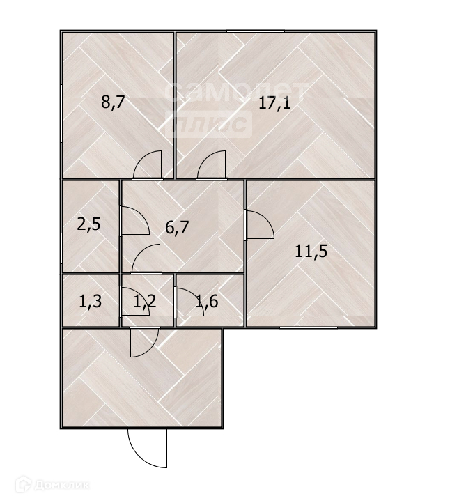 Общая площадь 60.7 м2