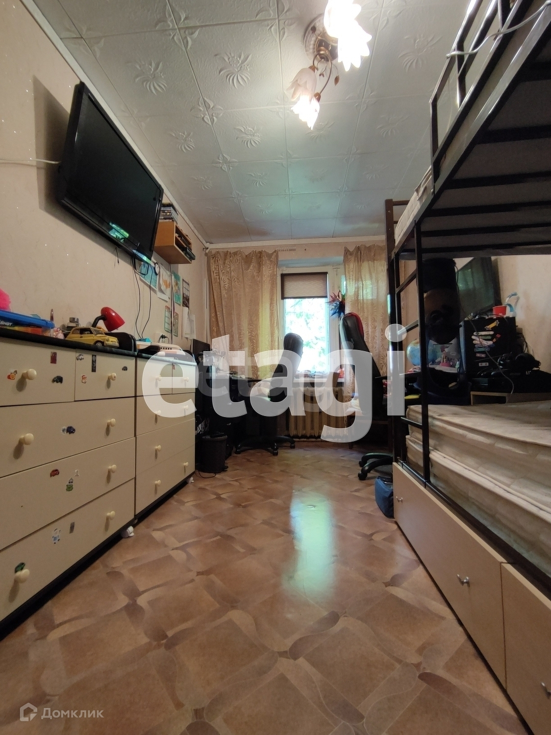 В квартире выполнен косметический ремонт, окна выходят на две стороны, квартира светлая, теплая. Две комнаты изолированные, одна, большей площади, проходная. Так же вместе с квартирой в собственность переходят два подвальных помещения.