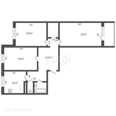 Общая площадь 73.3 м2