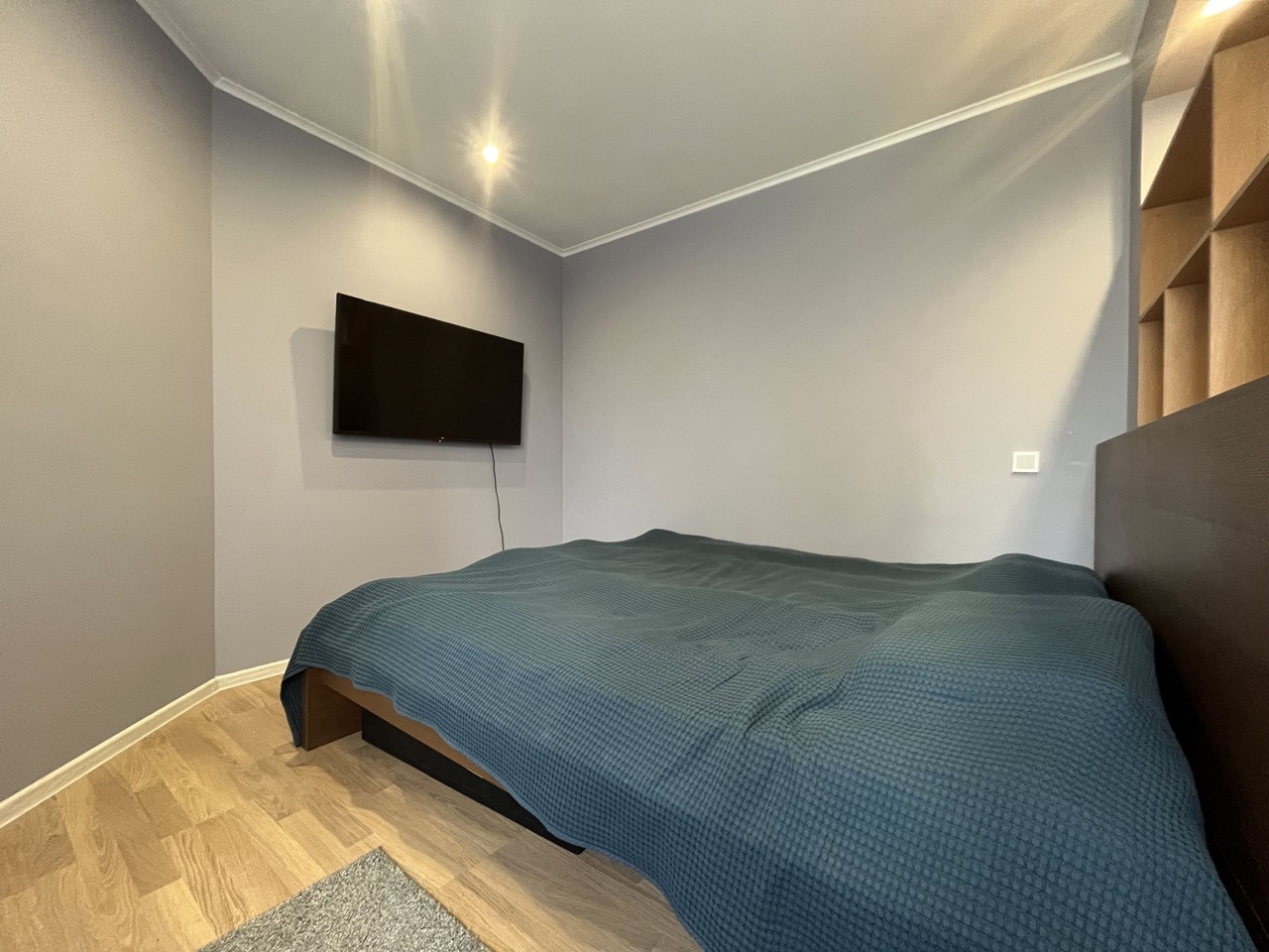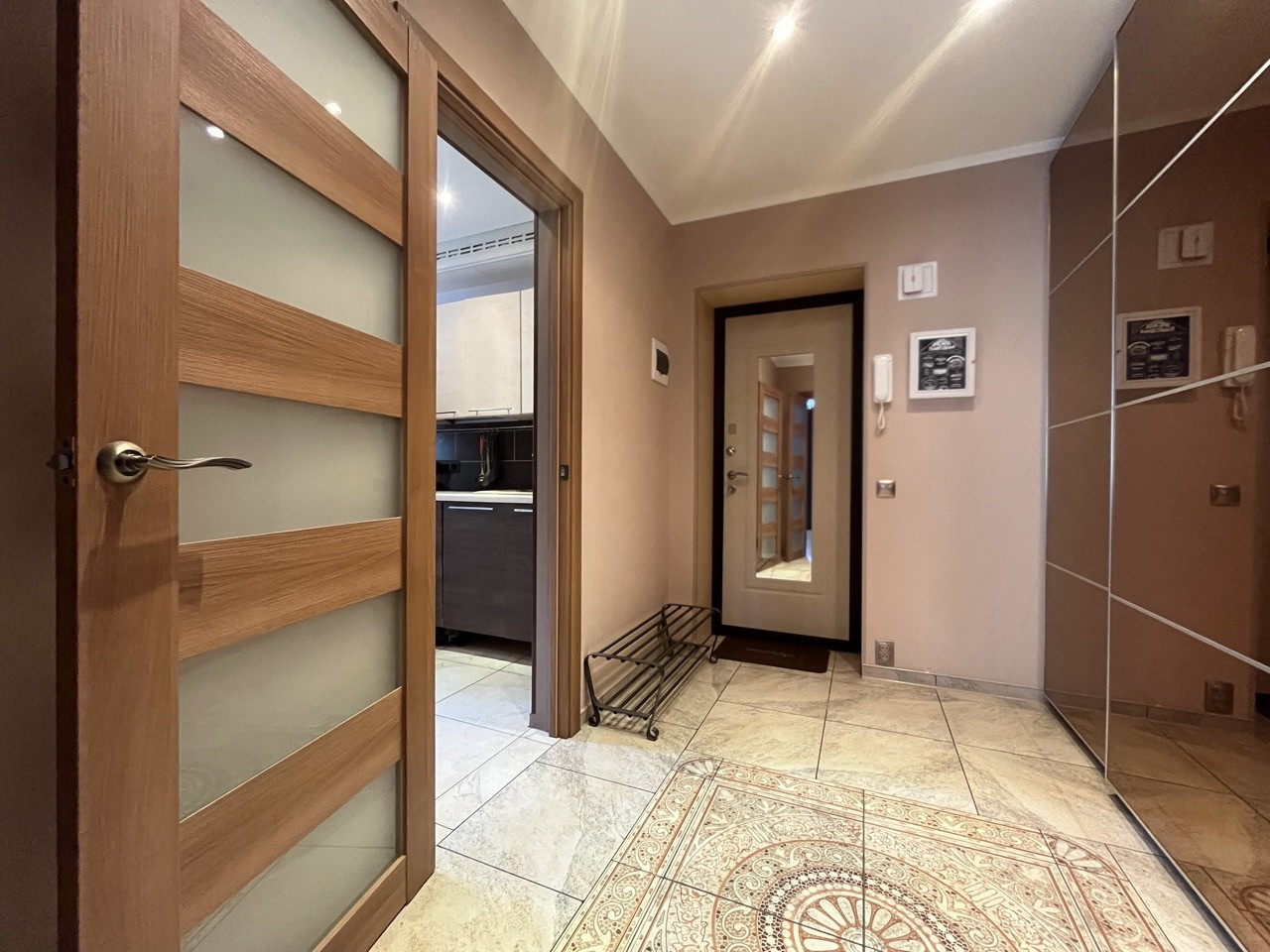 Общая приведенная площадь: 52 кв.м., просторная квадратная кухня - 12 кв.м. с встроенной мебелью и техникой Bosch - посудомойка, варочная панель, духовой шкаф, холодильник, комната с двойным зонированием - 20 кв.м. Сан. узел выложен плиткой, объединен, установлен теплый пол.