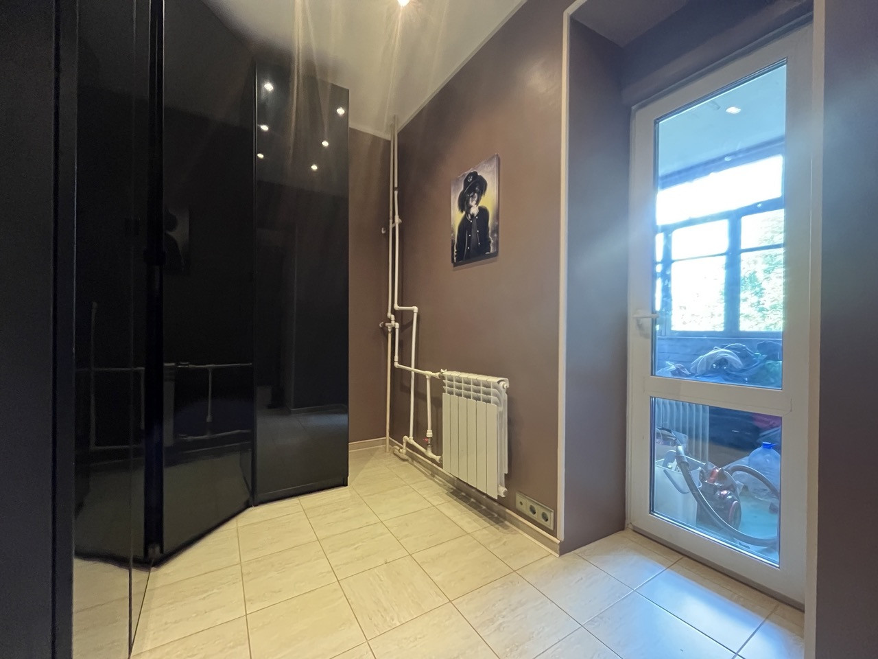 Часть коридора, в которой расположен шкаф с прилегающей лоджией около 4 кв.м. - можно при желании отгородить, и после утепления лоджии использовать как дополнительную комнату с площадью около 10 кв.м.