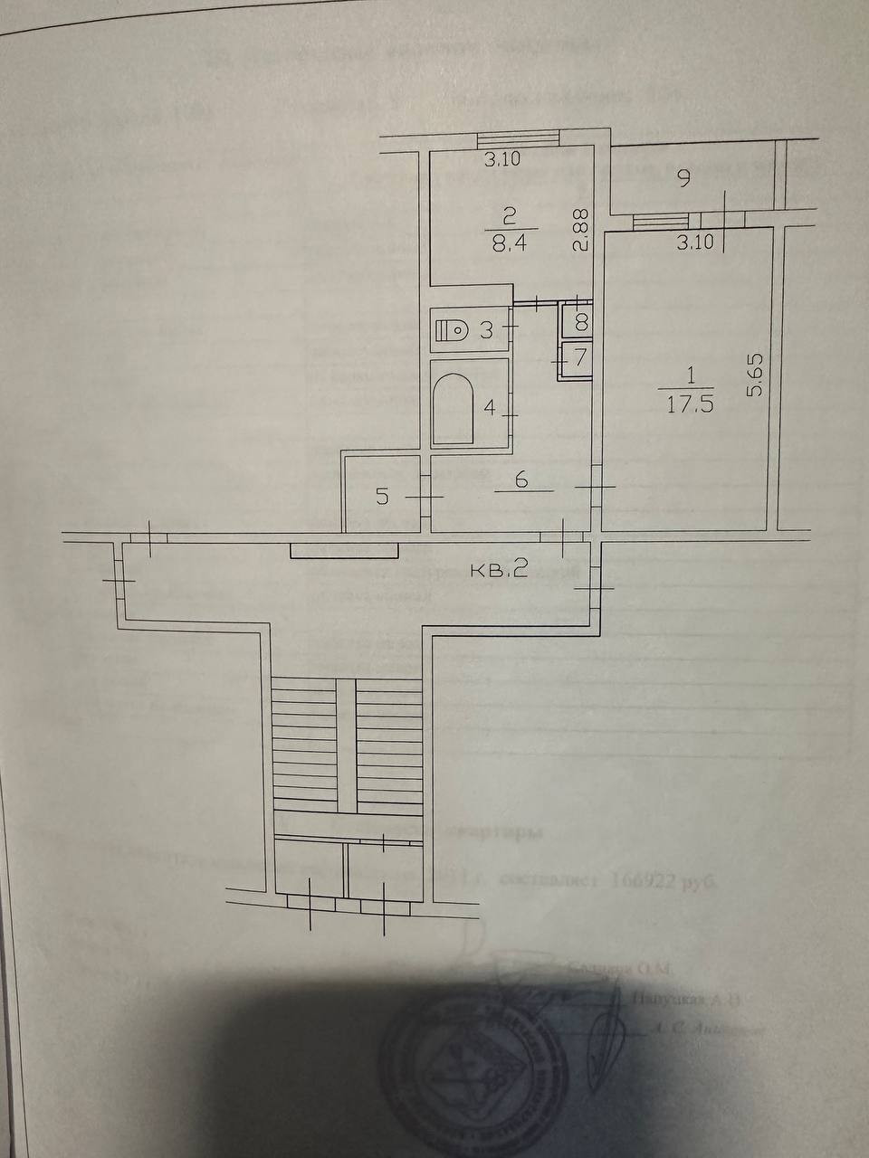 Жилая площадь 17.5 м2