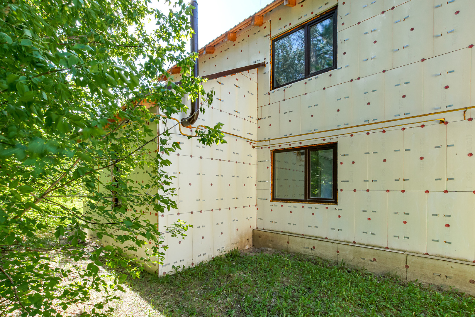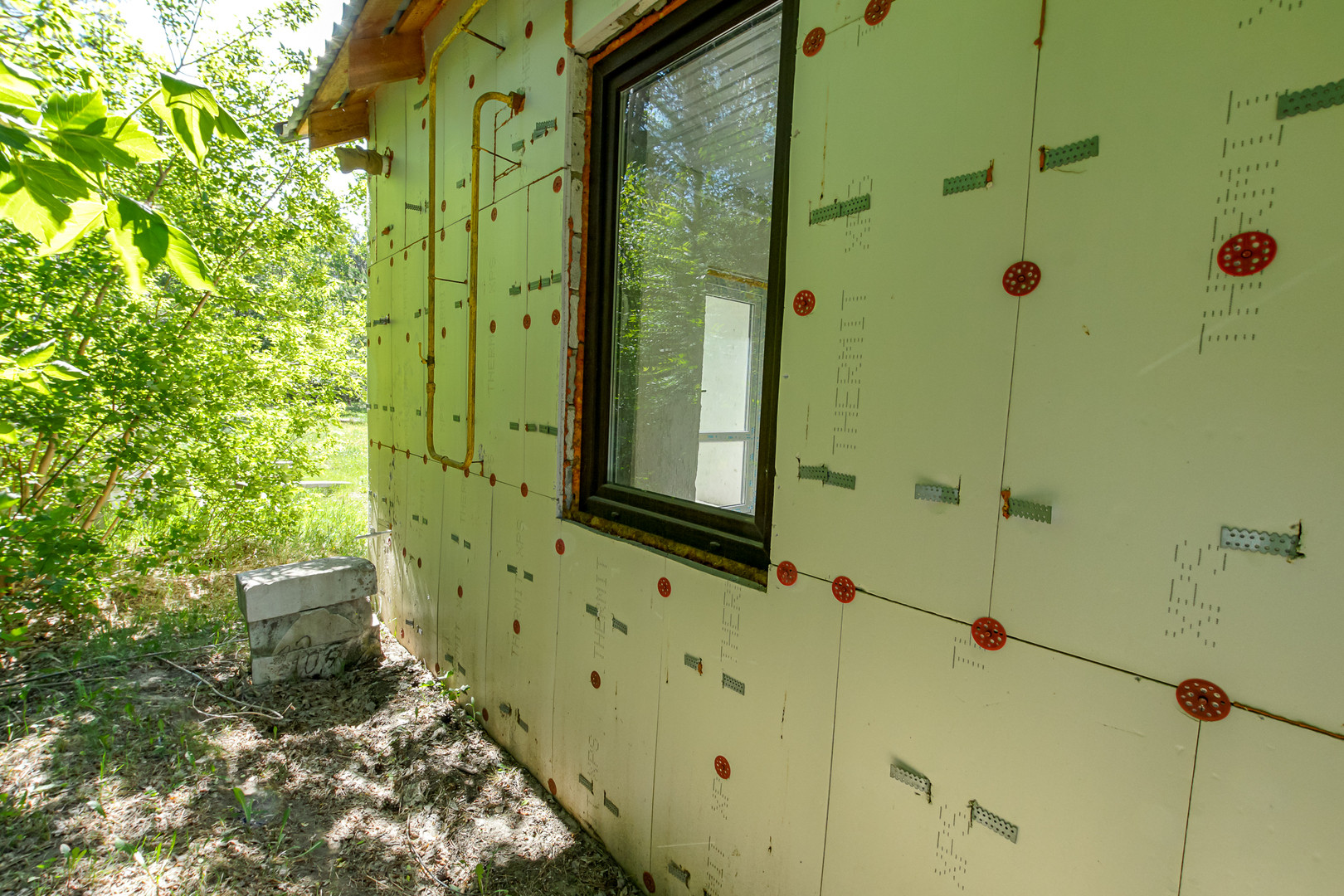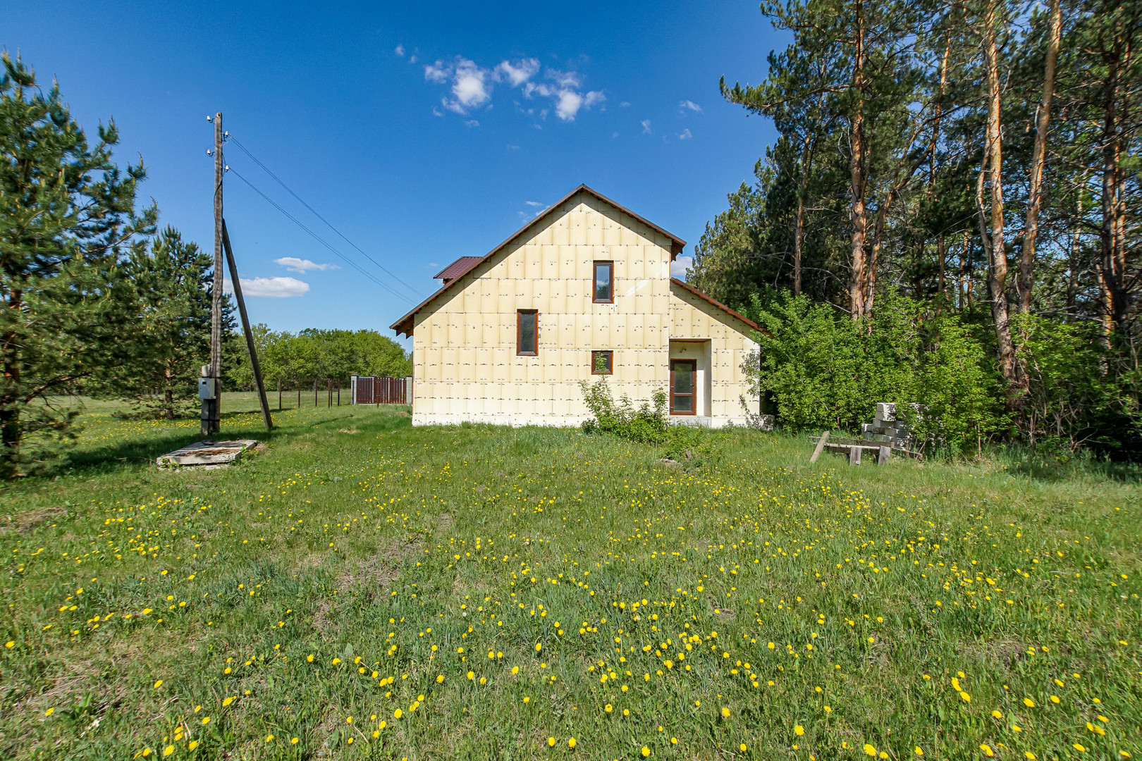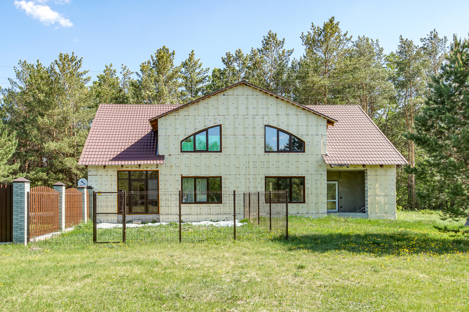 Дом из газоблока, утеплен пеноплексом, без наружней отделки. Крыша металлочерепица.