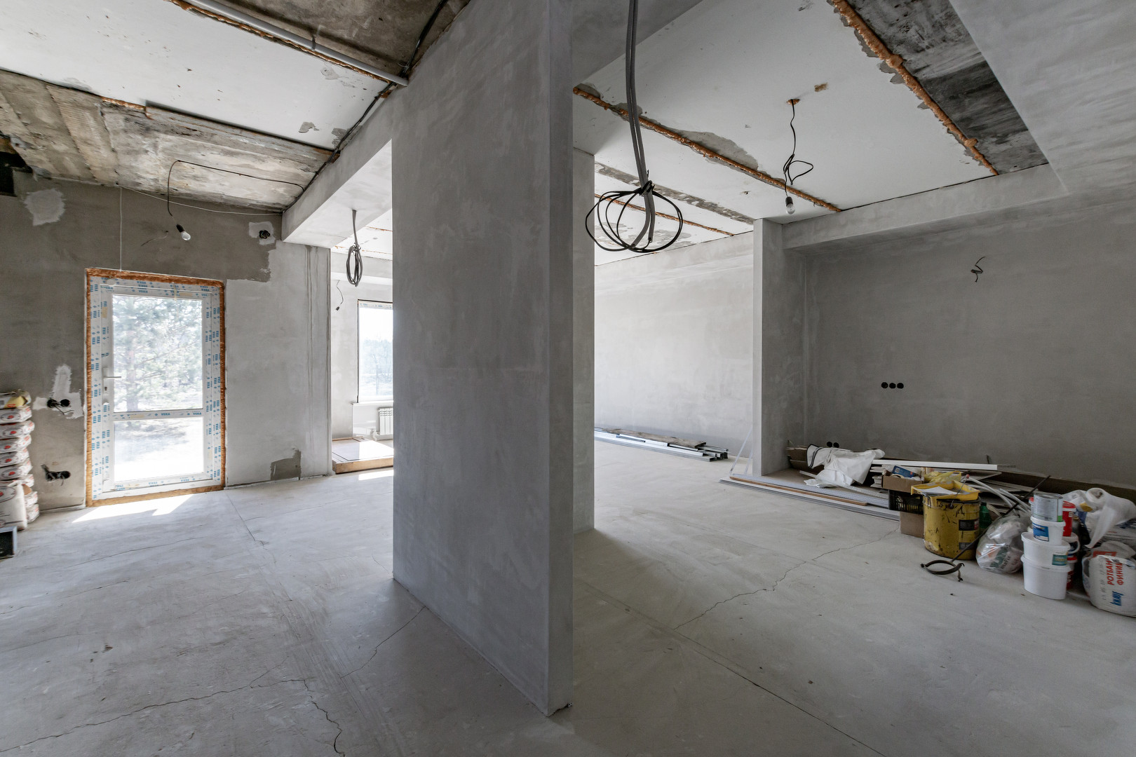 На 1-ом этаже: свободная планировка (зона кухни 13 кв.м. и гостинная 23 кв.м), санузел раздельный, котельная с отдельным выходом.
