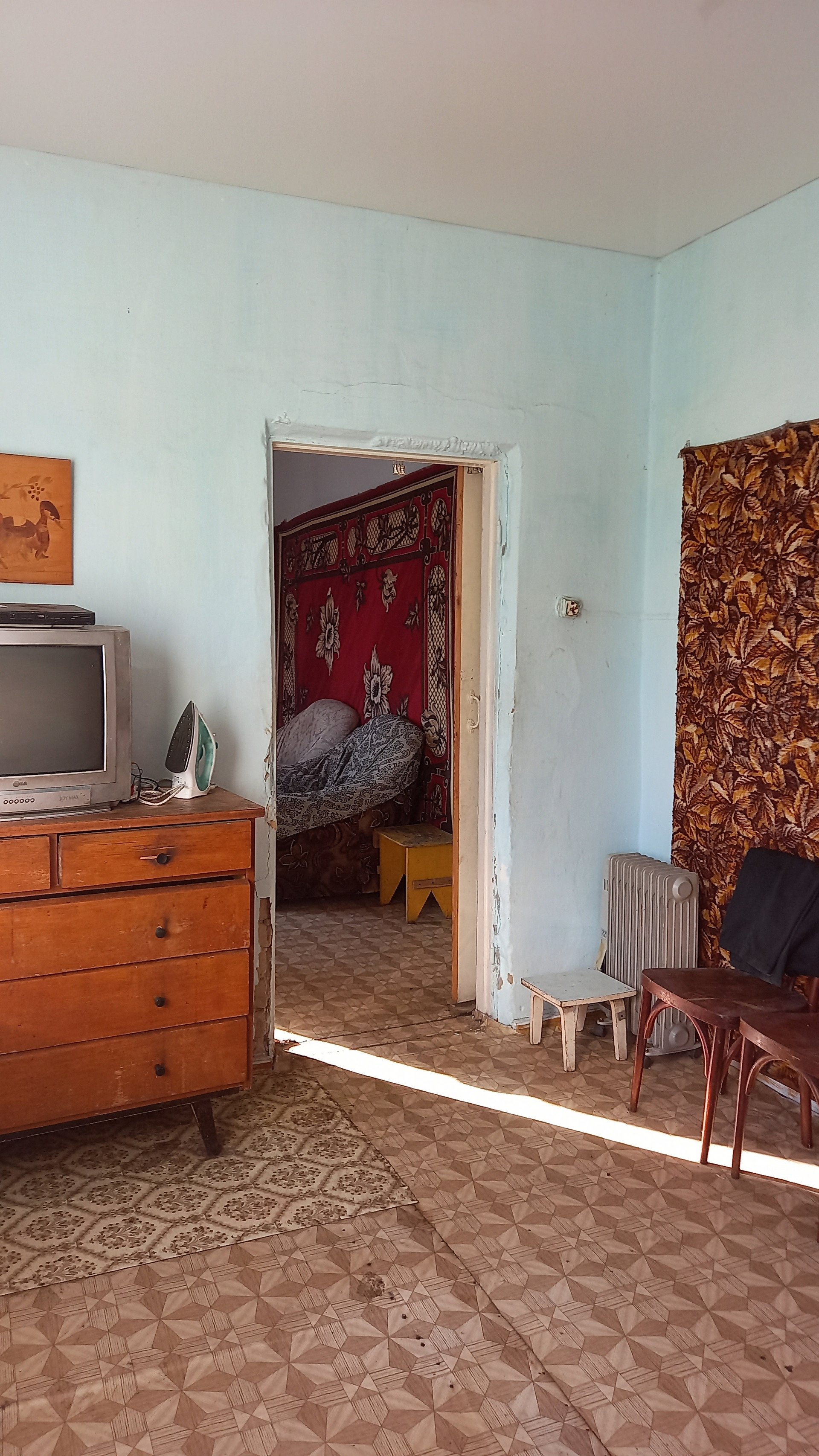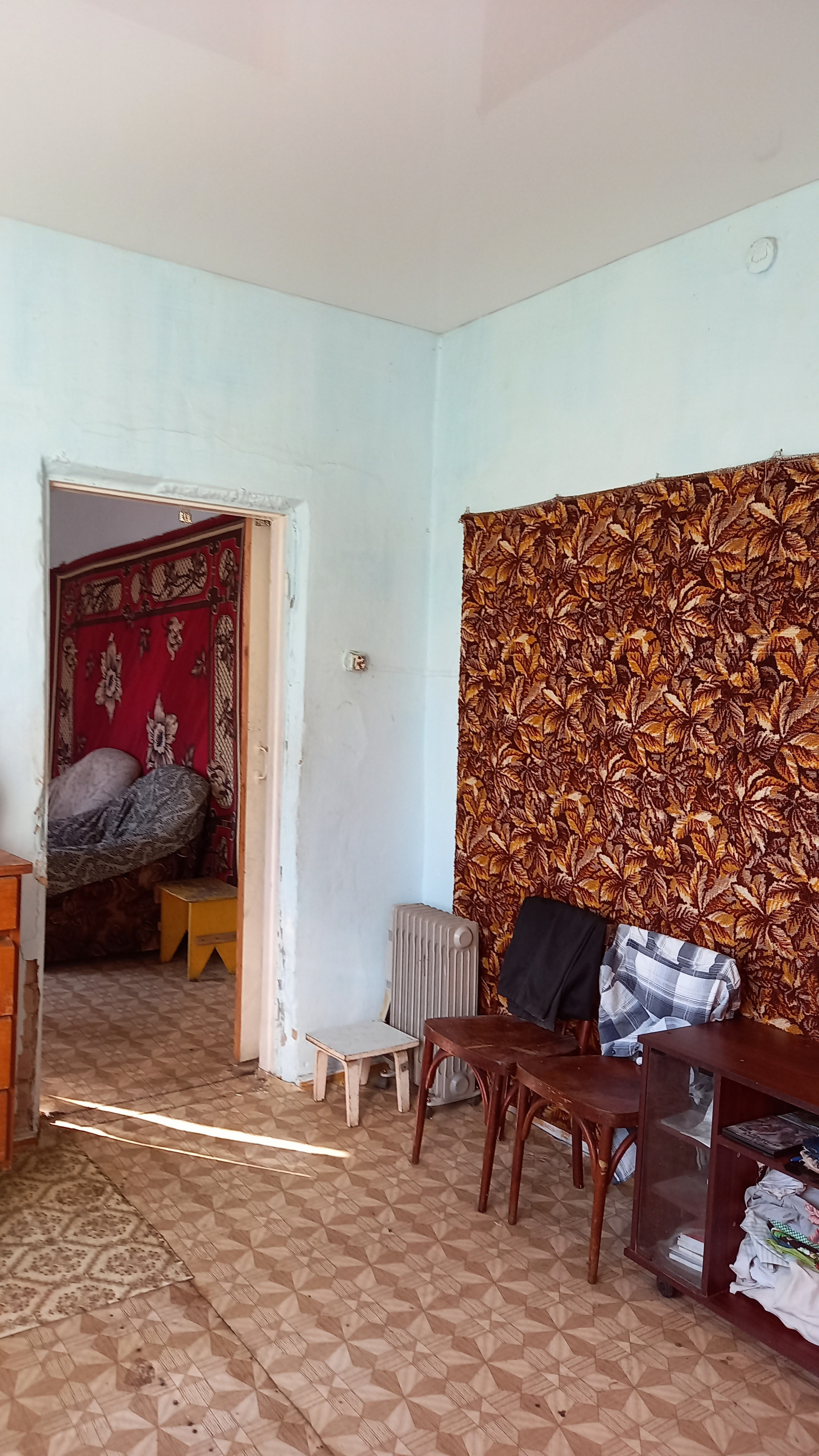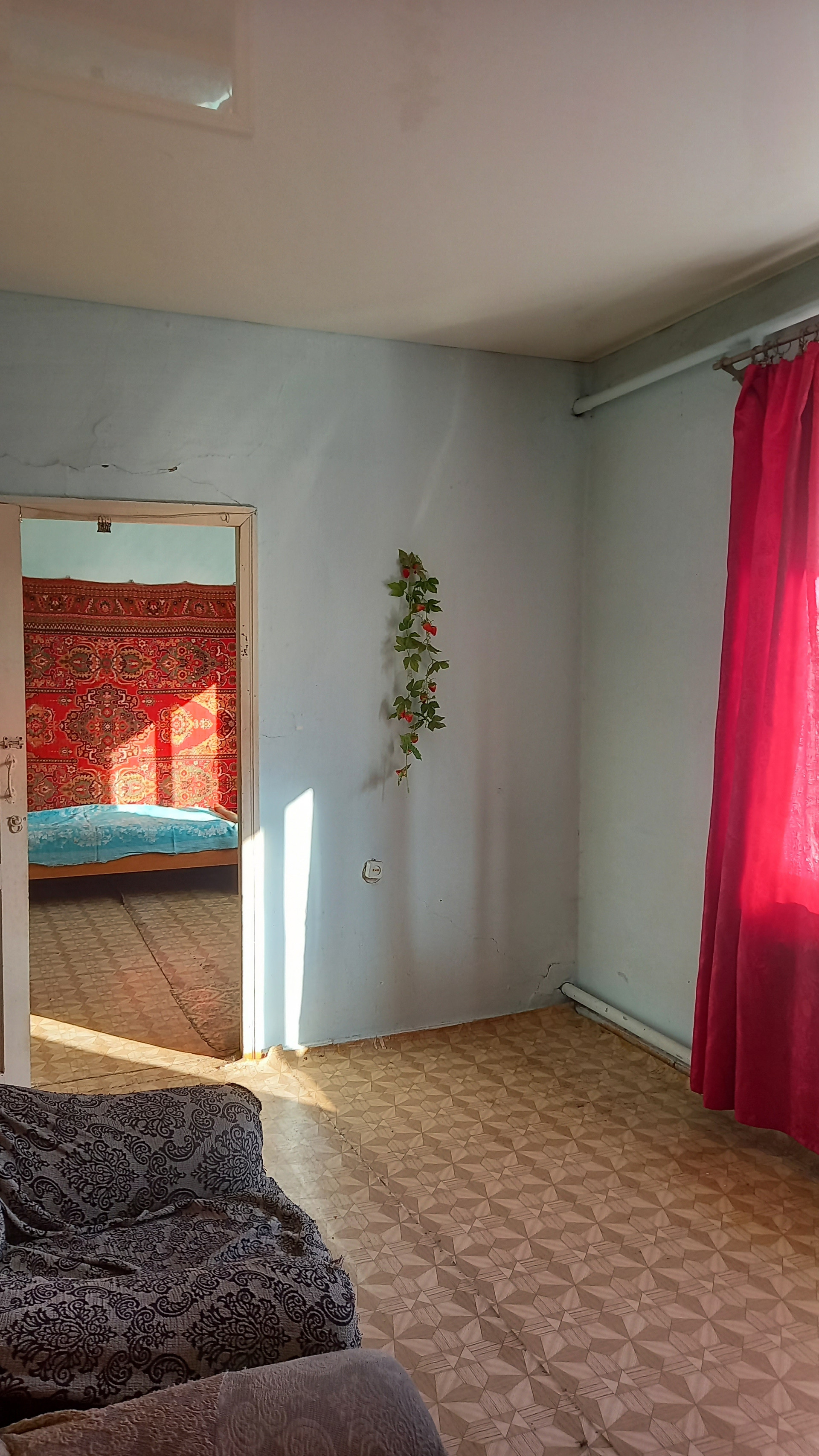 2 комнаты,кухня,коридор,окна пластик,стены ровные,пол не скрипит,покрыт линолеумом, с/у в доме ( требует капитального ремонта),кирпичная веранда.У нового хозяина есть уникальная возможность сделать современный ремонт и не жалеть,что что- то могло еще послужить. Крыша покрыта металлопрофилем 2 года назад.