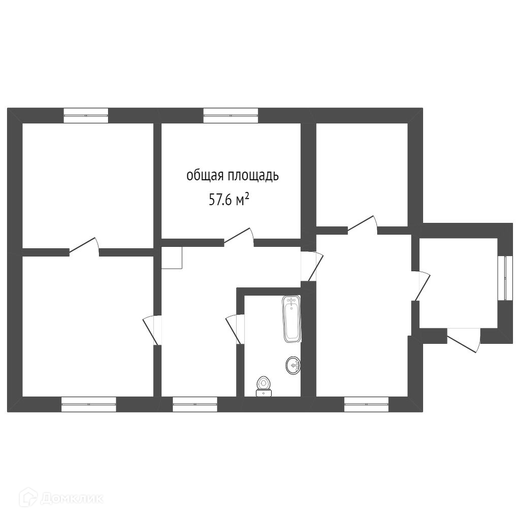 Общая площадь 57.6 м2