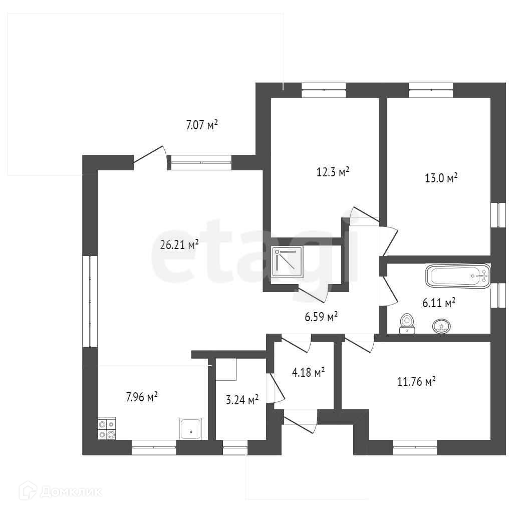 У него отличная планировка с тремя спальнями и просторной гостиной площадью целых 26,21 м2!