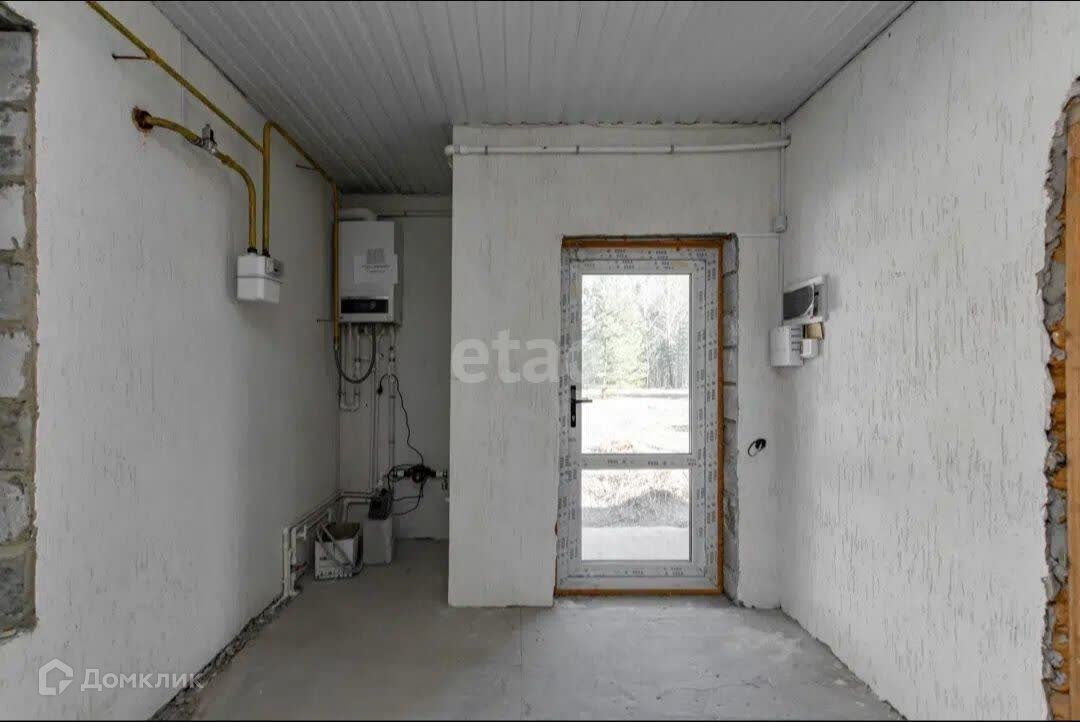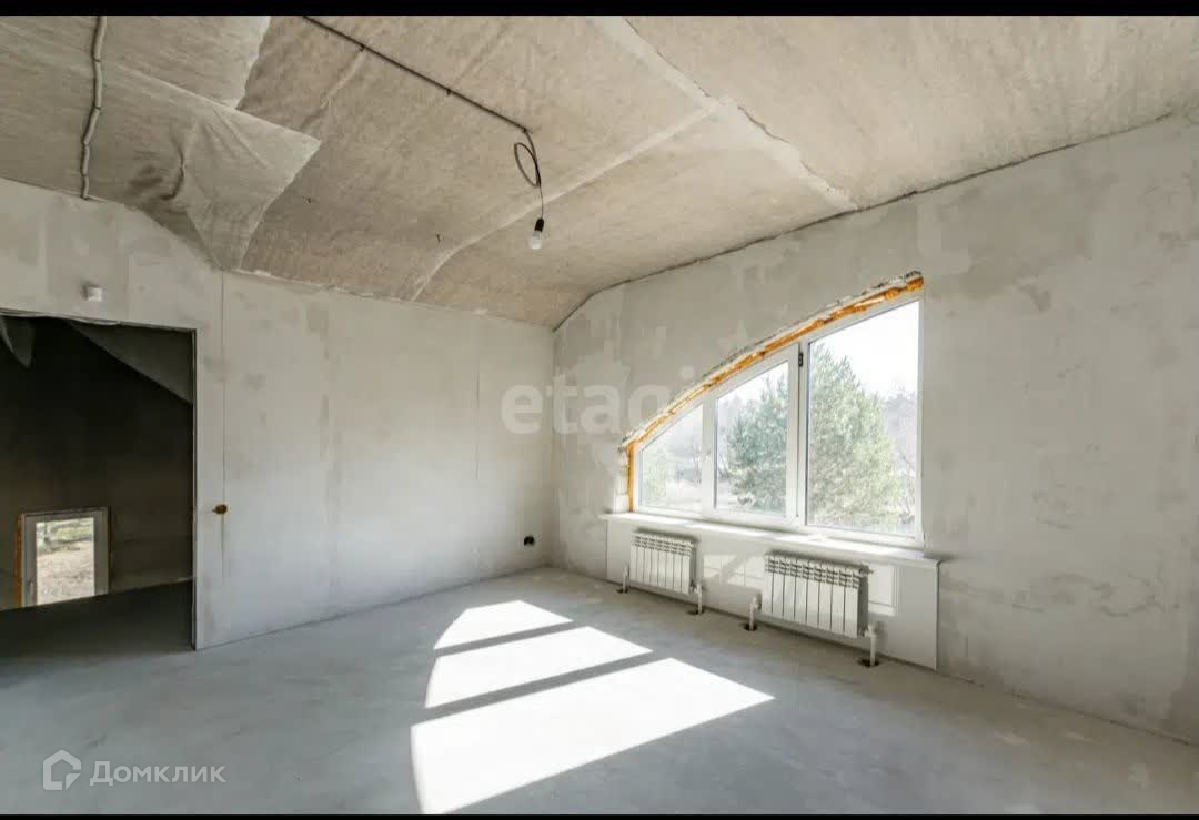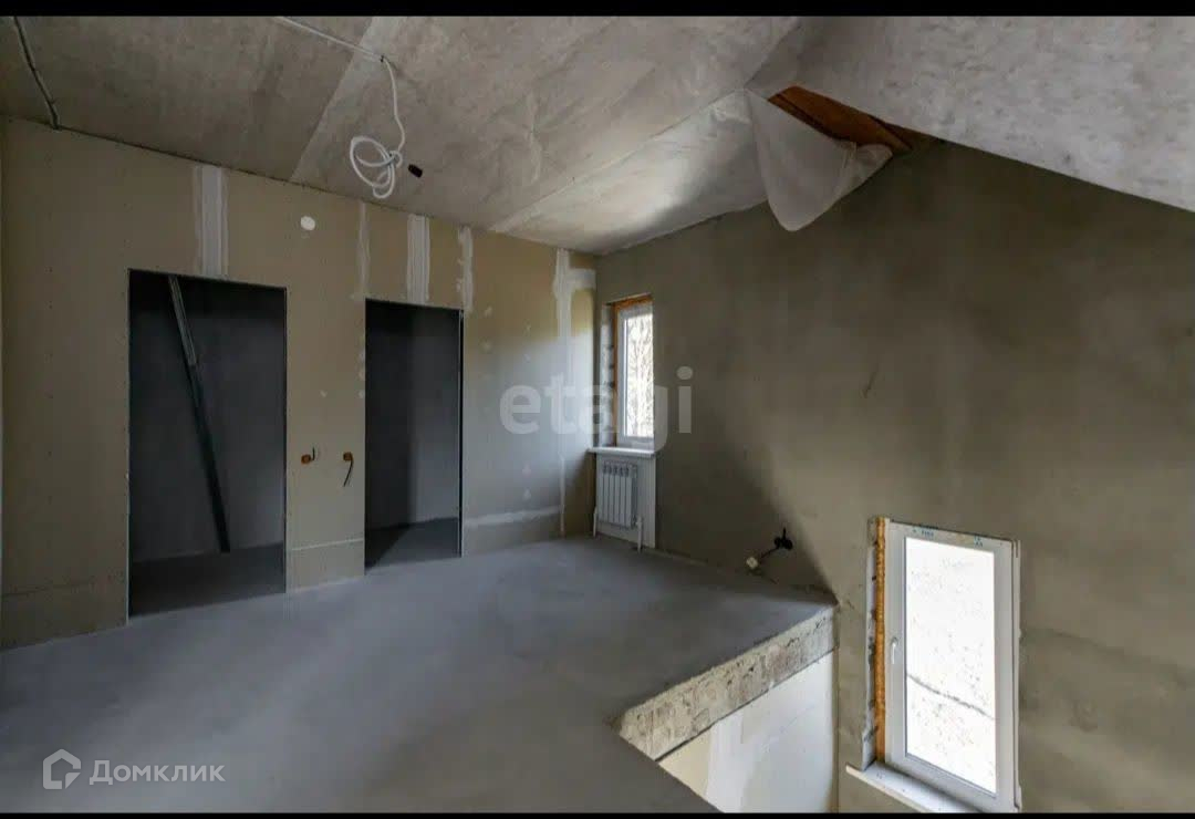 В доме выполнена чистовая отделка: стены оштукатурены и выравнены финишной шпатлевкой, полы залиты.