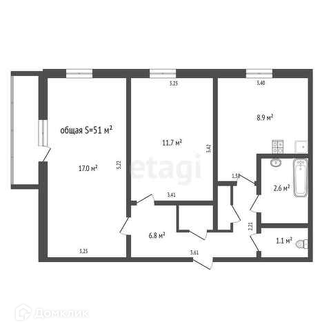 Общая площадь 51 м2