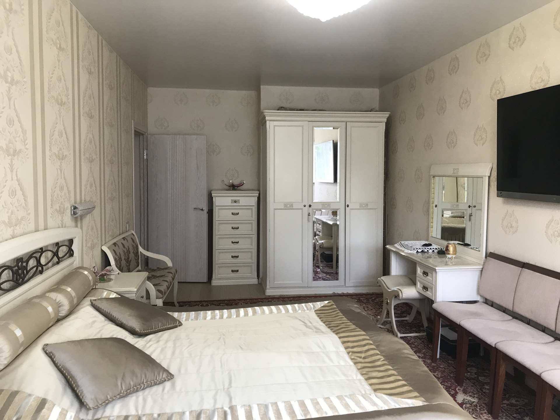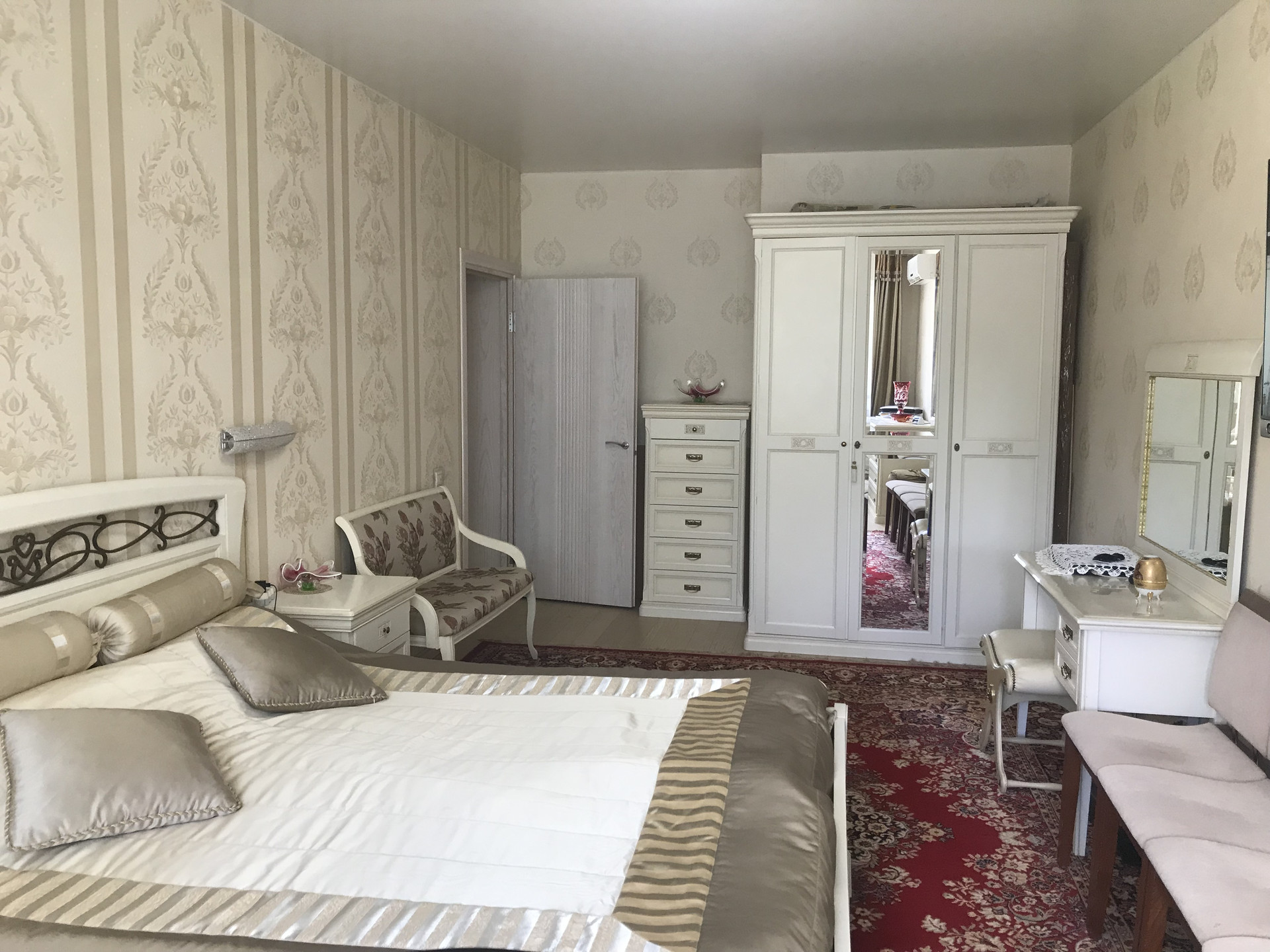 Отличная двухкомнатная квартира с качественным дорогим ремонтом в с. Павловская Слобода, ул. Советская, д. 3. Просторная спальня 17,4 кв.м., гостиная комната с выходом на лоджию 13,5 кв.м., удобная кухня 11,1 кв.м, совмещенный санузел, коридор с большим встроенным шкафом-купе. В отделке квартиры использованы дорогие материалы. В спальне и кухне установлены кондиционеры. Теплый пол в санузле и коридоре.