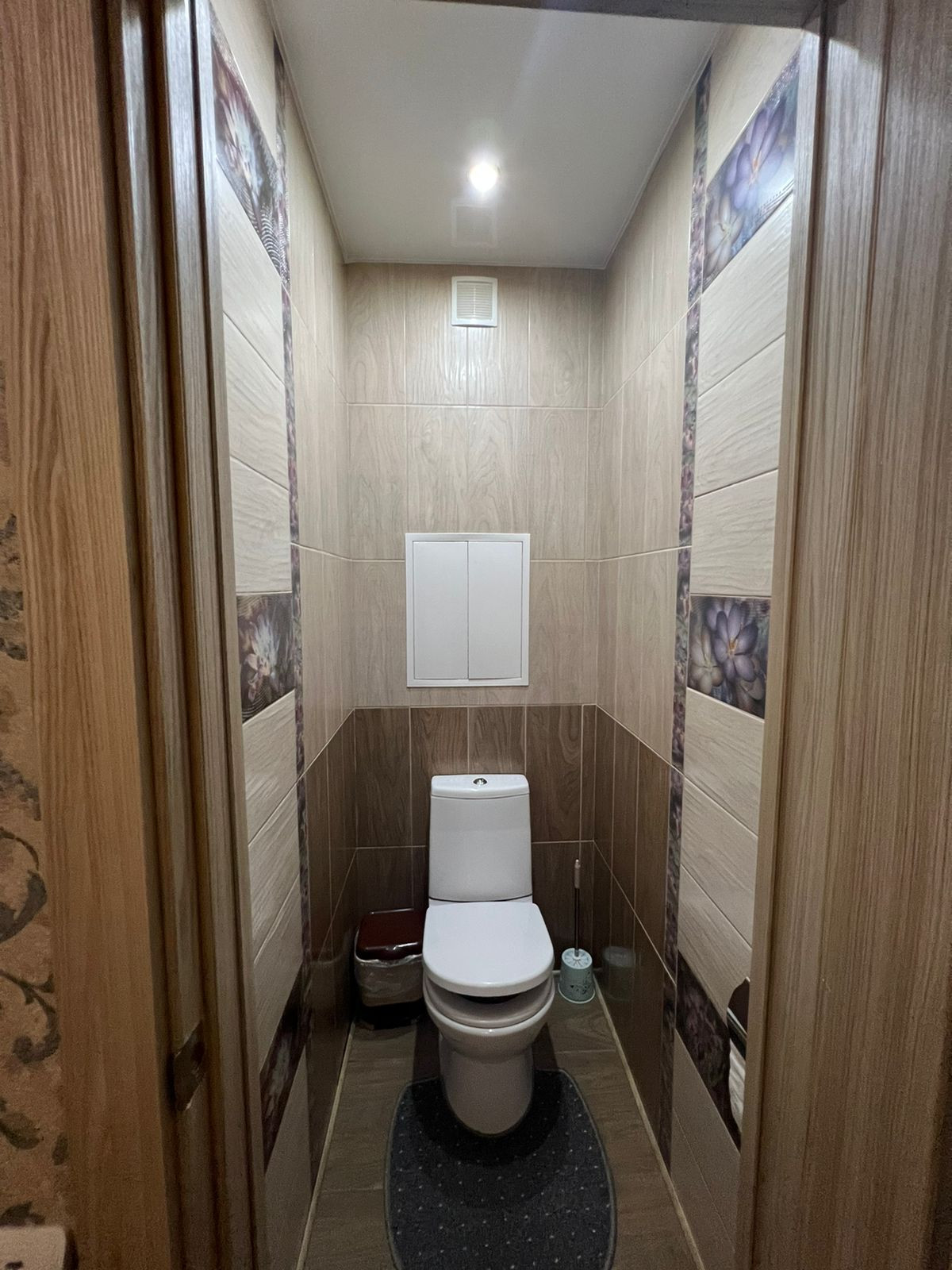 - Напольное покрытие в ванной и на кухне керамогранит, в комнатах ламинат;