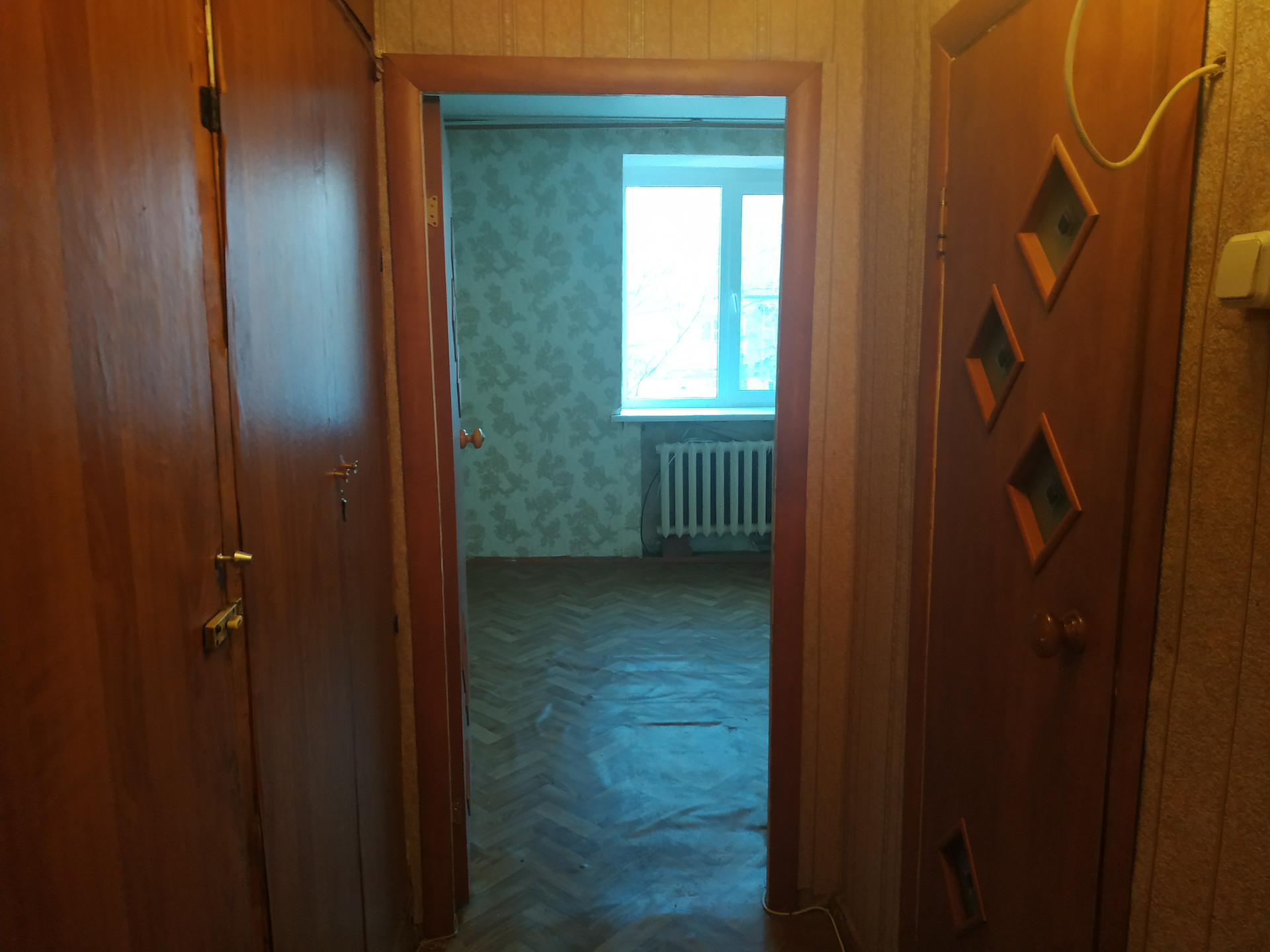 - поклеены обои, на полу линолеум,