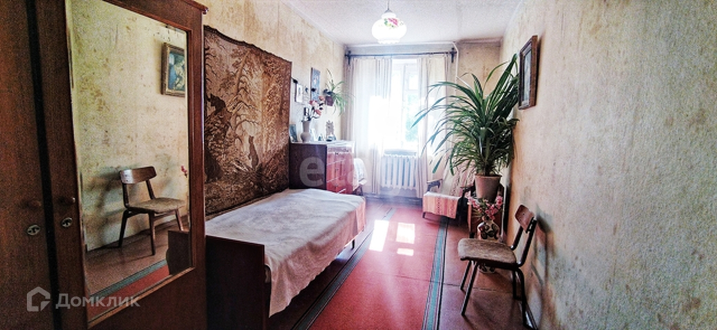 1 комната отдельна (спальня).окна выходят во двор. Другие комнаты на две стороны выгодно выделяют данную квартиру среди других вариантов. С одной стороны комнаты выход на балкон, на детскую площадку. Балкон не застеклен. Окна деревянные.