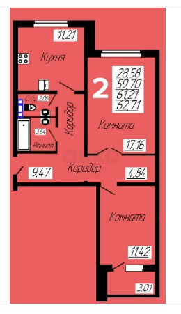 Общая площадь 62.71 м2