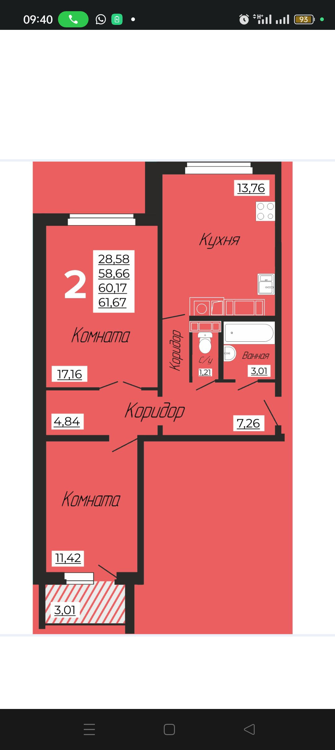Общая площадь 62 м2