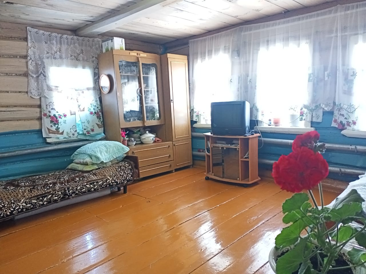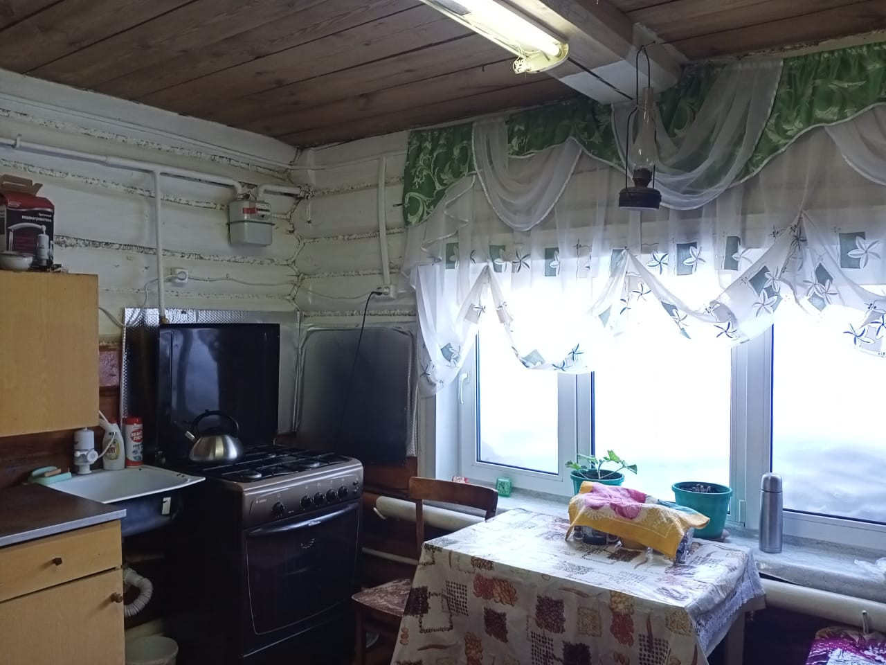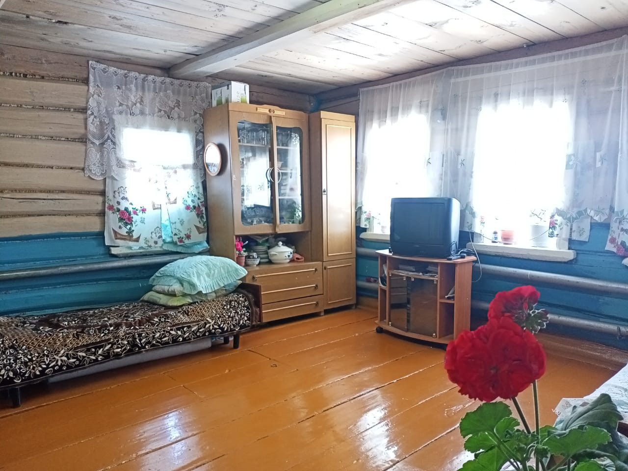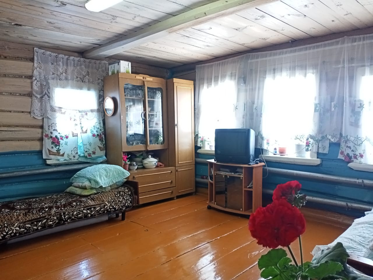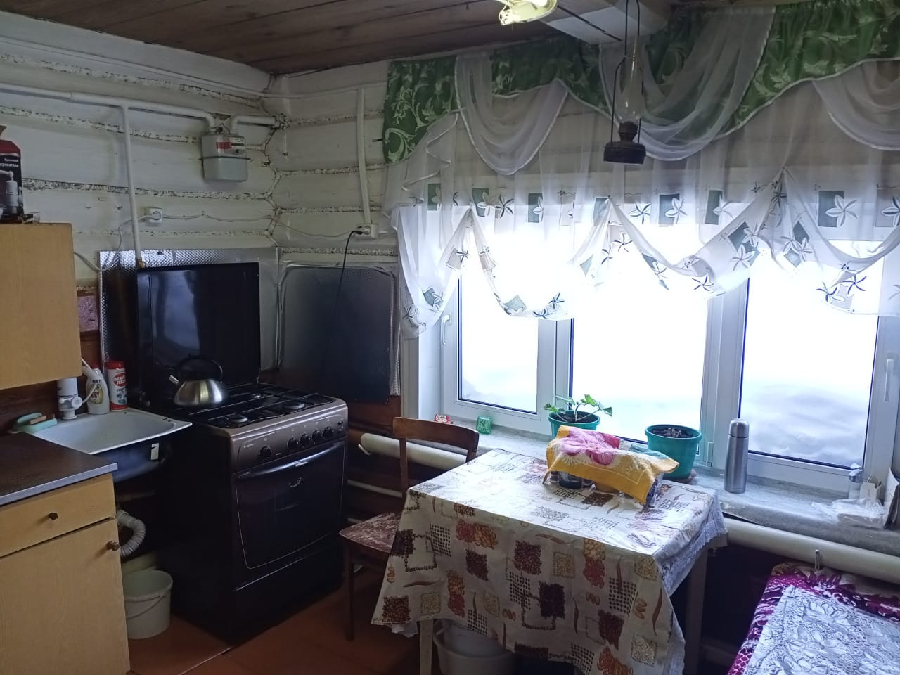 Дом бревенчатый, очень теплый. Общая площадь 50 кв.м. Все коммуникации в доме.