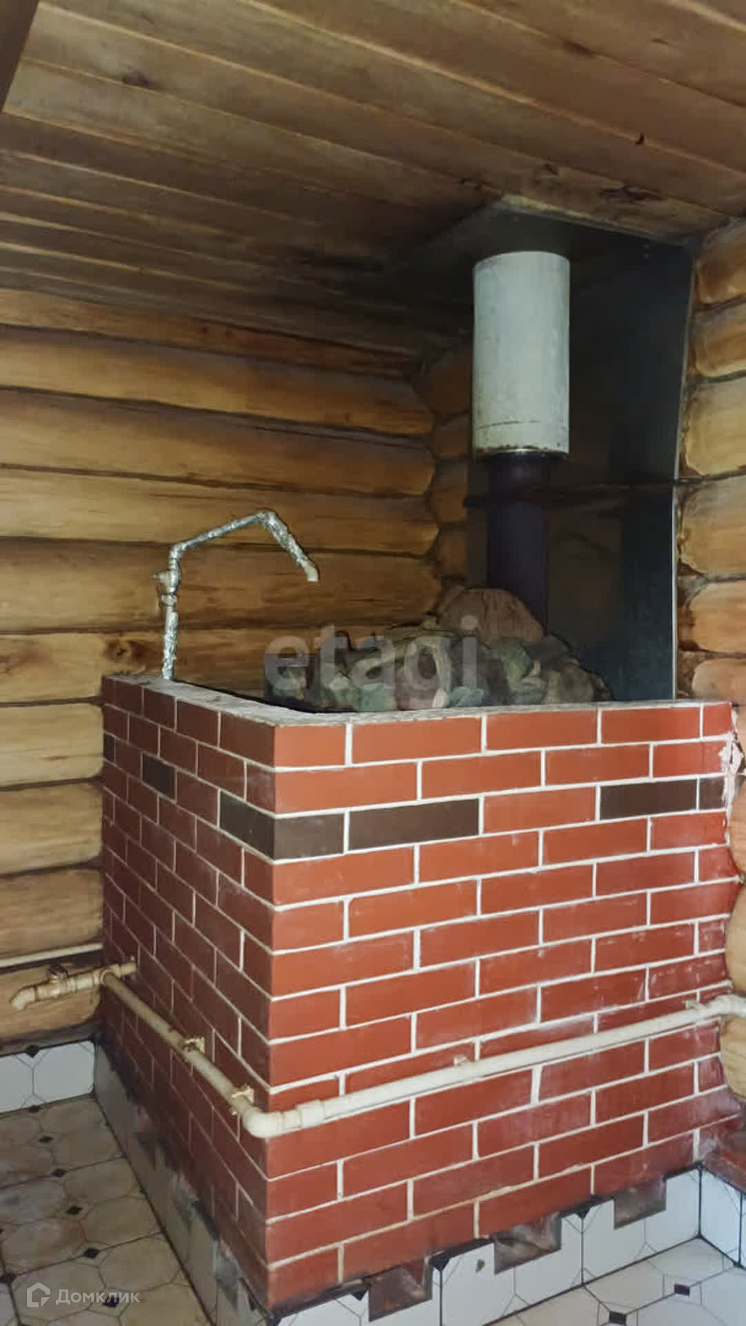 Баня топится дровами, есть возможность переключить на газовое.