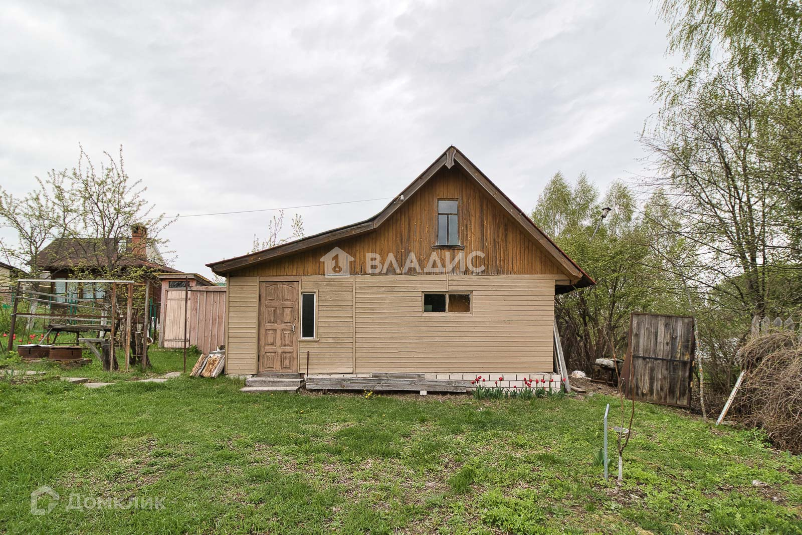 Участок большой формы. На участке построена баня, своя скважина. На участке высажены плодово-ягодные растения.