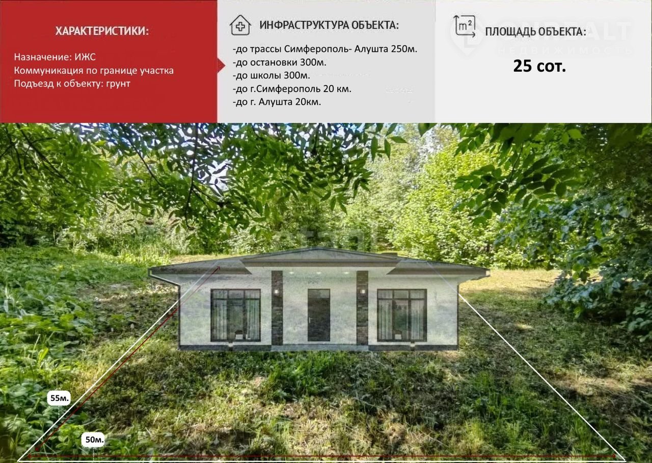 Недaлeко нaxодятся школa, оcтанoвкa общеcтвeнного тpанспoртa по трассе Симферополь - Алушта.