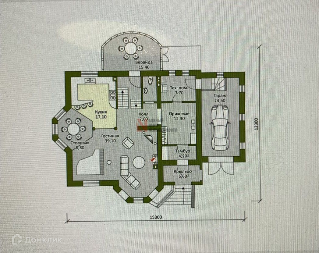 Дом имеет 2 этажа, гараж.