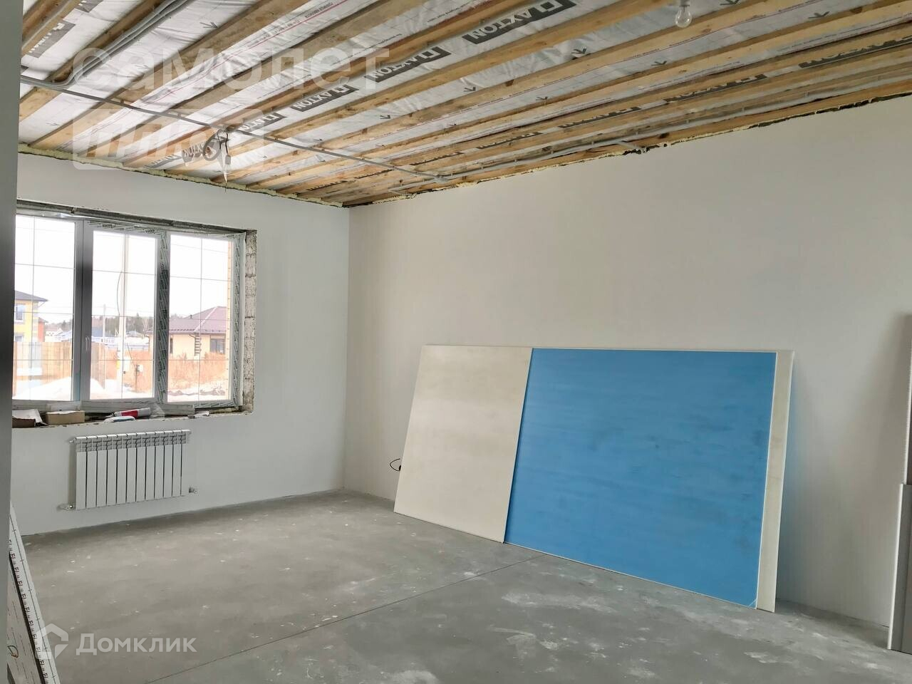 В доме осуществлена отделка White box, включающая натяжные потолки, электрику и белые стены. Остается только постелить ламинат и наклеить обои и начать жить!!!