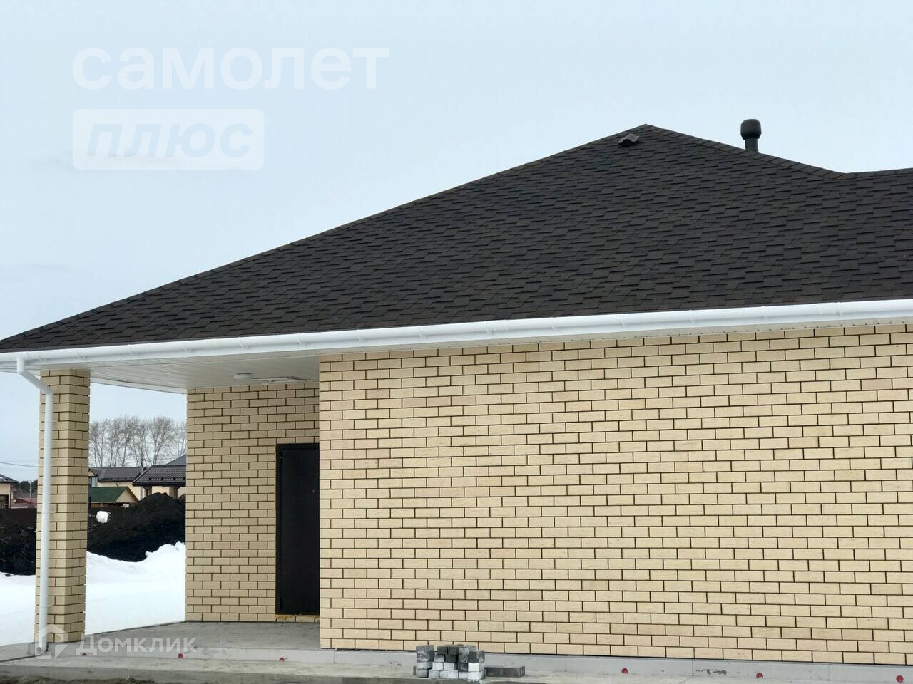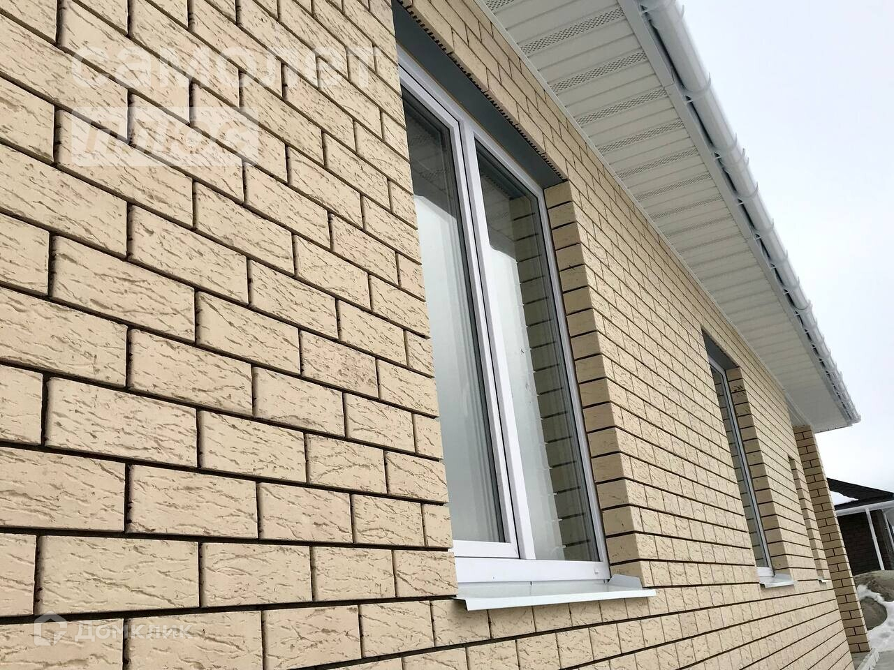 Дом построен на монолитной плите 300. Стены дома выполнены из керамического кирпича, пенополистирола и керамзитоблока 300 (винзили). Окна дома – дорогие с фальшпереплетом профиля 70. До главного входа в дом имеется дорожка, выложенная брусчаткой. Крыша оснащена мягкой двухслойной кровлей и имеет водосточную систему. Фундамент утеплен и смонтирована утепленная отмостка.