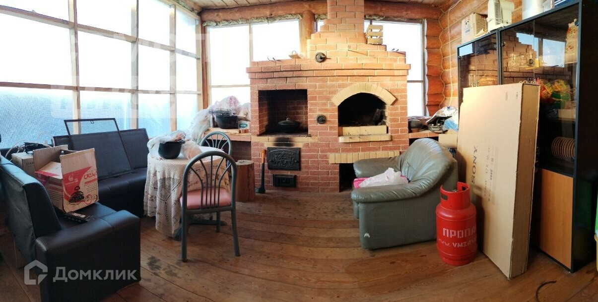 В доме печь-камин 70кВт с духовкой.
