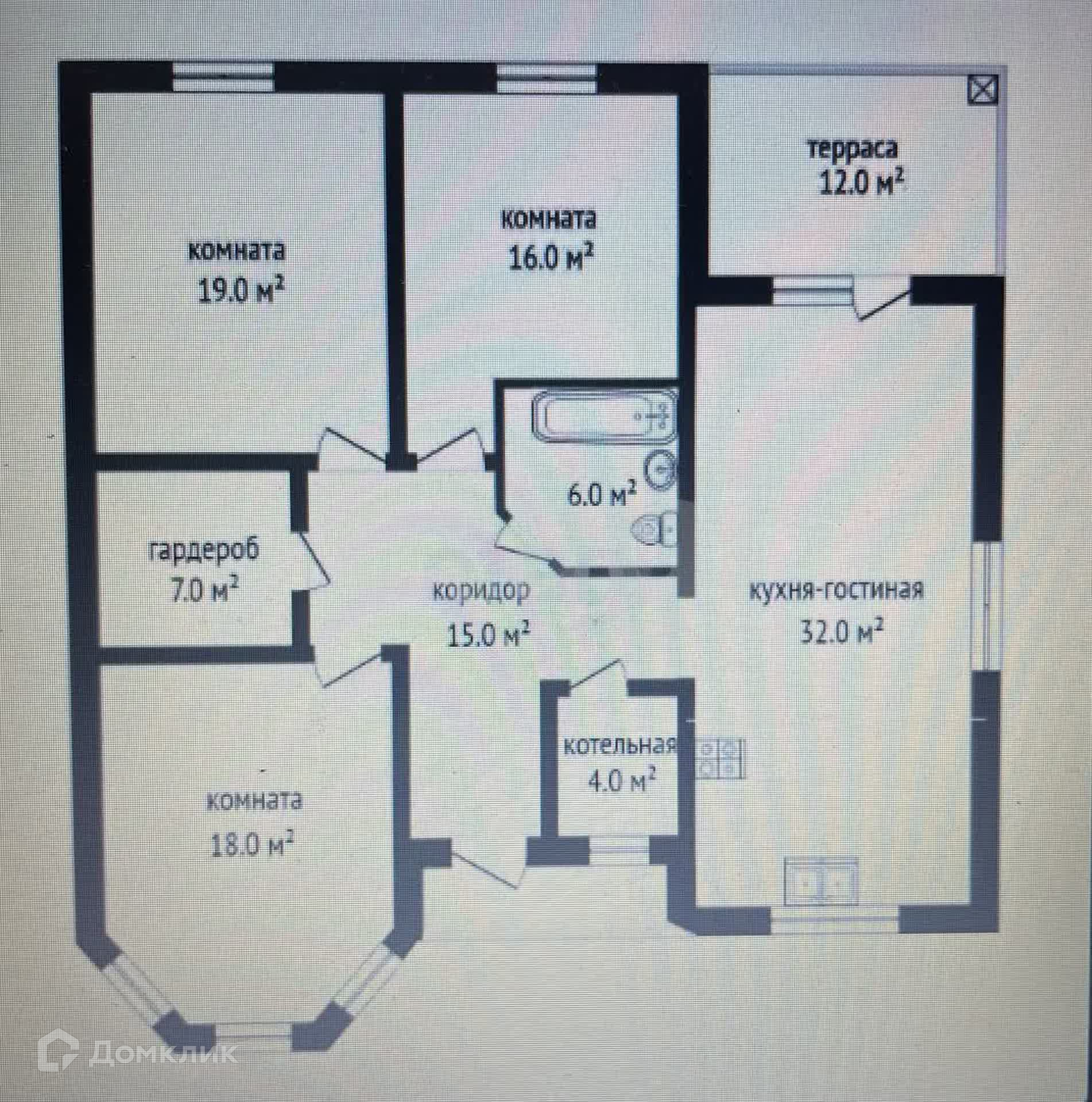 - Большая кухня-гостиная, три просторных спальни, гардеробная, котельная, сан. узел, терраса. Чистовая отделка, белые стены подготовлены под обои.